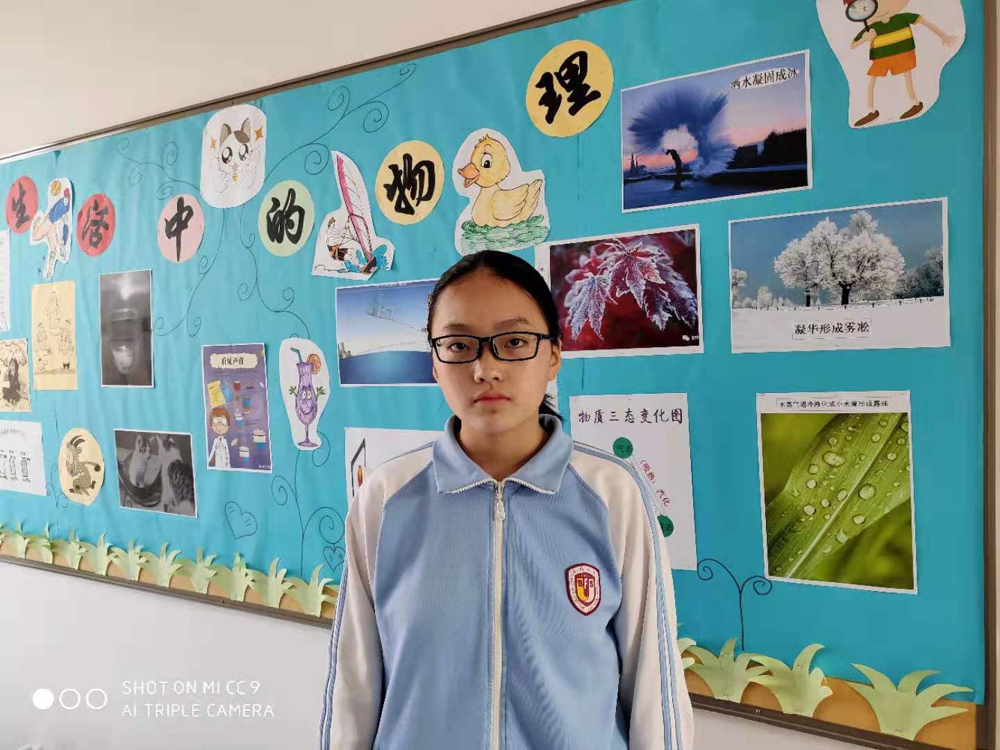 郝婧艺同学是班级里的物理课代表,对待工作她认真负责,按时收发作业,她无愧为老师的好帮手。同时她也非常的热心,课间总会帮助同学们解决作业上的各种难题。在平时生活中,她对待同学亲切友善,是同学们的暖宝宝,而且作为班级里的一份子,她言语文明,行为规范。也经常指出对同学之间的不良行为与不规范的言语,并以身作为良好示范。她还积极参与学校学校活动,是学校媒体部,推理社的一员。