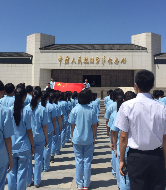 进入纪念馆后,同学们整齐地站成了一个方阵。首先,在老师的带领下,同学们面向国旗,庄严的唱起了中华人民共和国国歌。之后,我大步走上前去,笔直的站在五星红旗旁,举起右拳带领大家宣誓。“铭记历史,缅怀先烈,珍爱和平,开创未来”,这十六个字每一个字都爆发出了最强音,好像整个广场上都回荡着,久久不能停息,让我感觉我们就像一支时刻准备保家卫国奋勇杀敌的军队。在气势磅礴的宣誓声中,我听到了同学们爱国的满腔热情,我仿佛看到了先烈为保卫祖国的慷慨牺牲,我更感受到了我们这新一代中国青年身上背负着的振兴中华的责任。