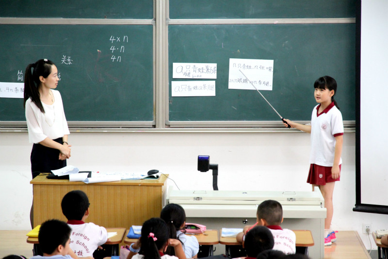 《用字母表示数》这节课有很多成功的课例,要想突破难度很大,但是四年级老师敢于迎难而上,尤其是作为授课老师的周继娜,敢于挑战自己,正如教研组长杨青老师所说的,学生都在围绕核心知识进行积极的思考,交流中有争执、有矛盾,但同时在争执与矛盾中不断反思、修正自己的想法,课堂氛围宽松,孩子们敢于质疑,老师的引导使得孩子们的交流不断深入。