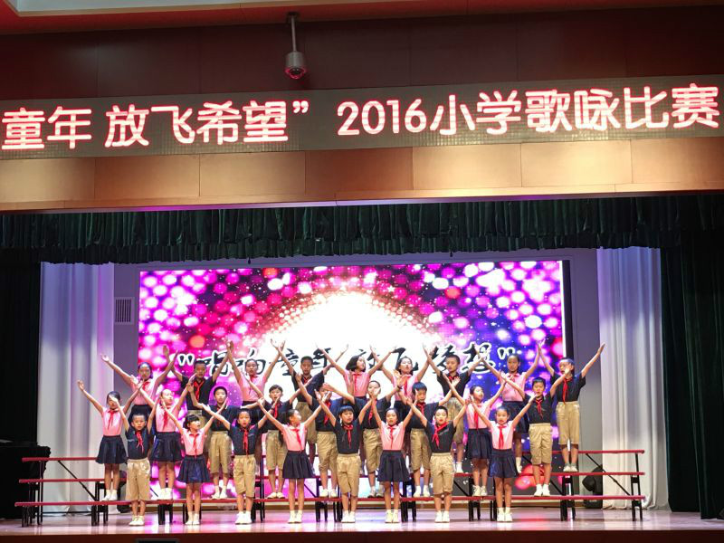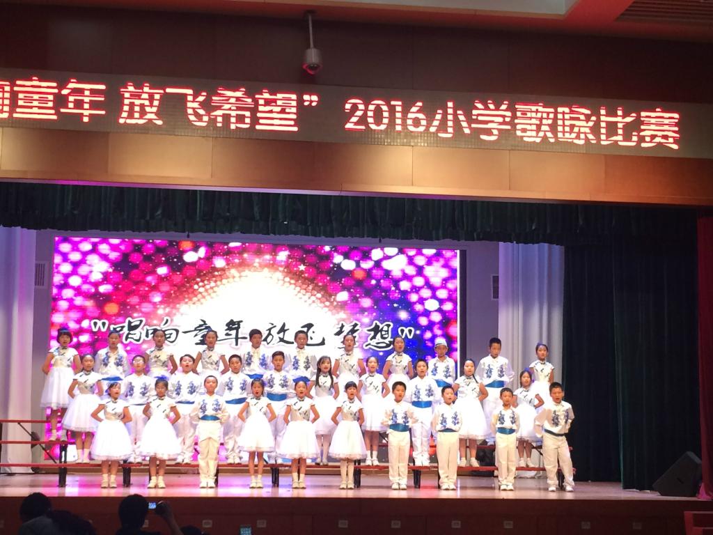 5月18日下午,小学四年级举行 “唱响童年,放飞希望”歌咏比赛活动。四年级师生及部分家长志愿者欢聚国瑞厅,北外附校小学副校长孟娜、孙亚楠,教务主任李琳参加了此次活动。