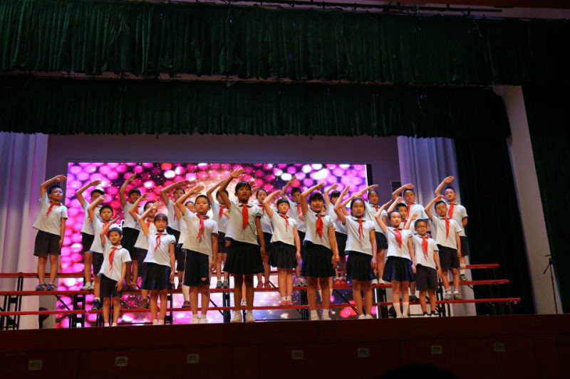 童年的美好,孩子们用歌声来点缀,童年的梦想,孩子们用笑语来描绘。十个班的孩子们都把自己最阳光的一面展示在观众面前。虽然已是初夏,但是孩子们如同参加了“春天举行音乐会”,这一群可爱的“春天的孩子”,在这“真善美的小世界”,沐浴着北外附校“爱的阳光”;瞧,“阳光牵着我的手”,“虫儿飞”,“八瓣花”,“木瓜恰恰”,多么美好的画面!听,“小小少年”,“一人一梦”,我们的“愿望”是“我想要飞”!“童心是小鸟”,孩子们伴着歌声在快乐自由翱翔,动听的歌声在校园久久回荡!