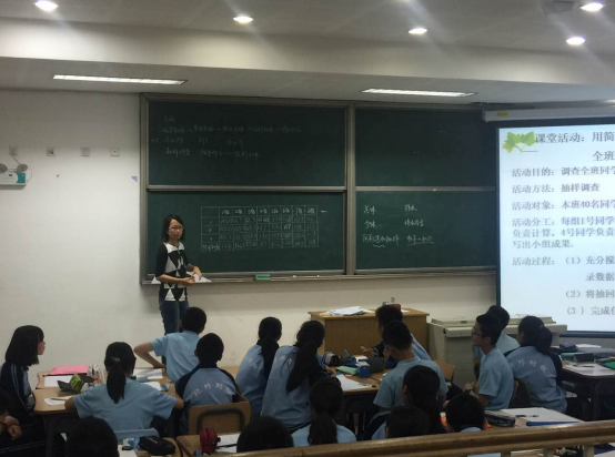 近期,江西宜春樟树二中骨干教师前来我校学习交流,2016年5月23日上午,初一年级数学老师王月华展示了一节《统计调查》的研究课,重在引导学生学会收集、整理和分析数据。樟树二中骨干教师团部分成员和数学教师们听课学习。
