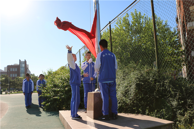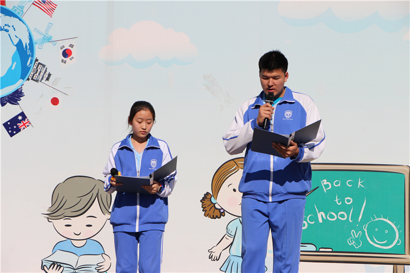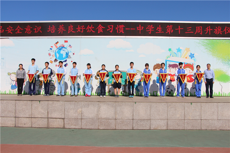 5月16日,我校举行主题为“强化食品安全意识,培养良好饮食习惯”的中学生第13周升旗仪式。主持人首先对演唱国歌的高二(1)班及该班升旗手张译禅同学作了介绍,本周升旗仪式的双语主持是来自高中校区的朱梓宁和鲁冠廷同学。