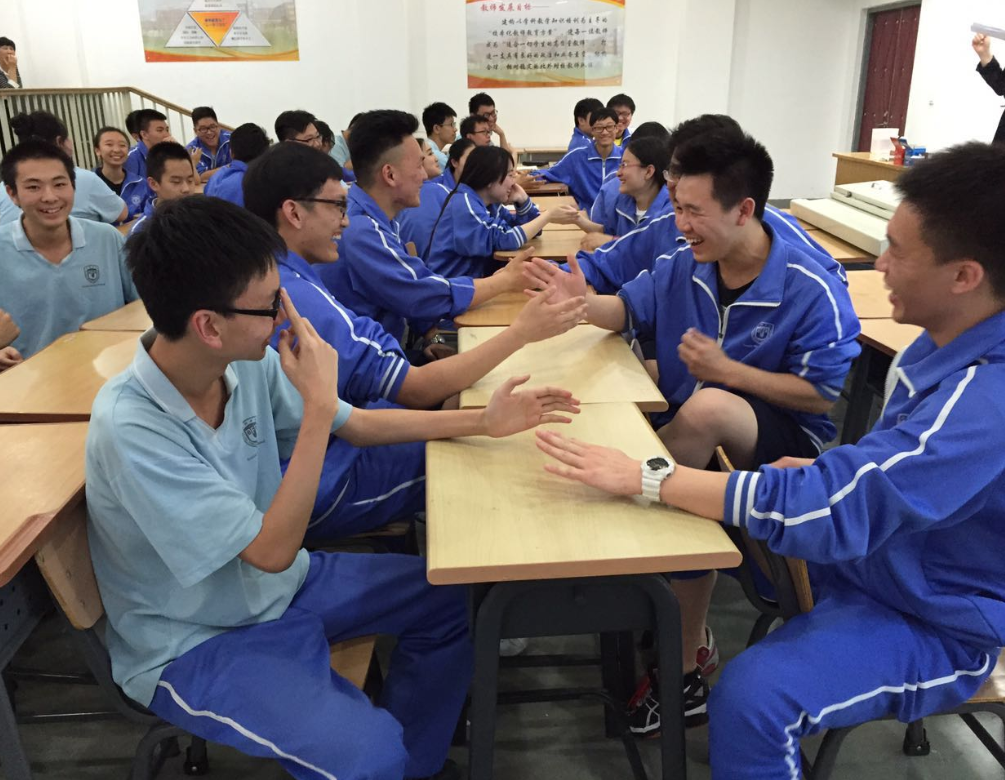 李丹老师通过“人桥实验”的视频让学生们认识到专注力可以激发潜能,并通过“乌龟与乌鸦”的小游戏带领同学们体验到全情投入做一件事带来的畅快淋漓的成就感;通过冥想带领同学们设置“心锚”,将现场体验到的积极感受与高考考场相联系,引发学生积极预期体验。通过“石块与水杯”的小实验让学生们体验到专注与立即行动是克服焦虑等不良情绪的即时法宝,并介绍如何用积极的“自我催眠指令”设置引导积极行动。活动现场学生们踊跃参与体验,时而笑声不断、时而静默体验,师生互动默契融洽、积极活跃。