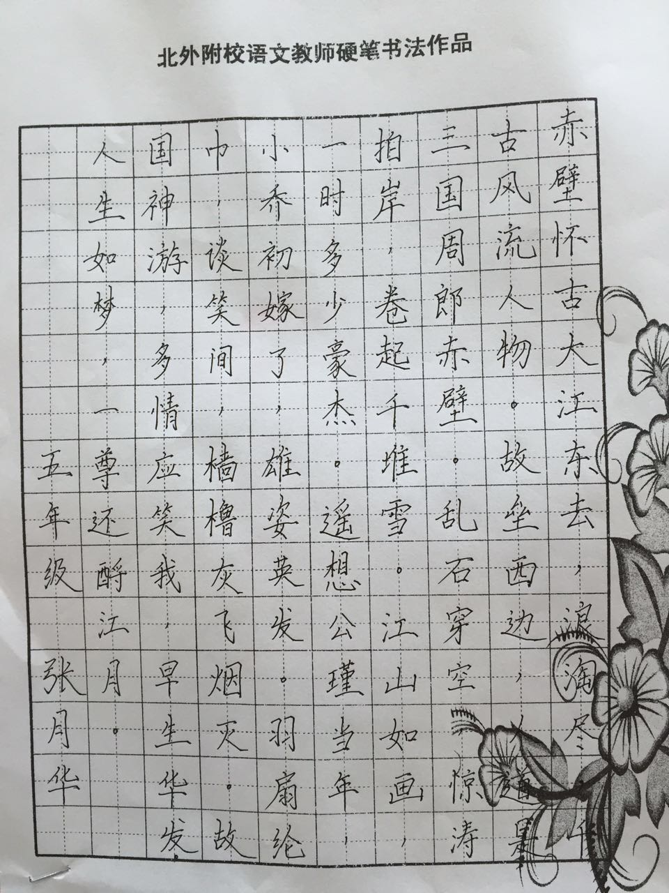 小学语文教研组继4月29日的硬笔书法作品书写活动之后,开展了组内交流、展示等系列活动,并于5月9日对所有教师的书法作品进行了展示。