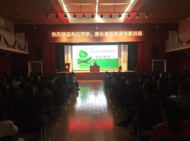 5月8日星期六,北京外国语大学知名英语教育专家张耘教授莅临我校,为即将升入初一年级的小学生和家长做主题为“如何成为一个好的英语学习者”的学法指导讲座。讲座全程由北外附校初中校长张继军主持。
