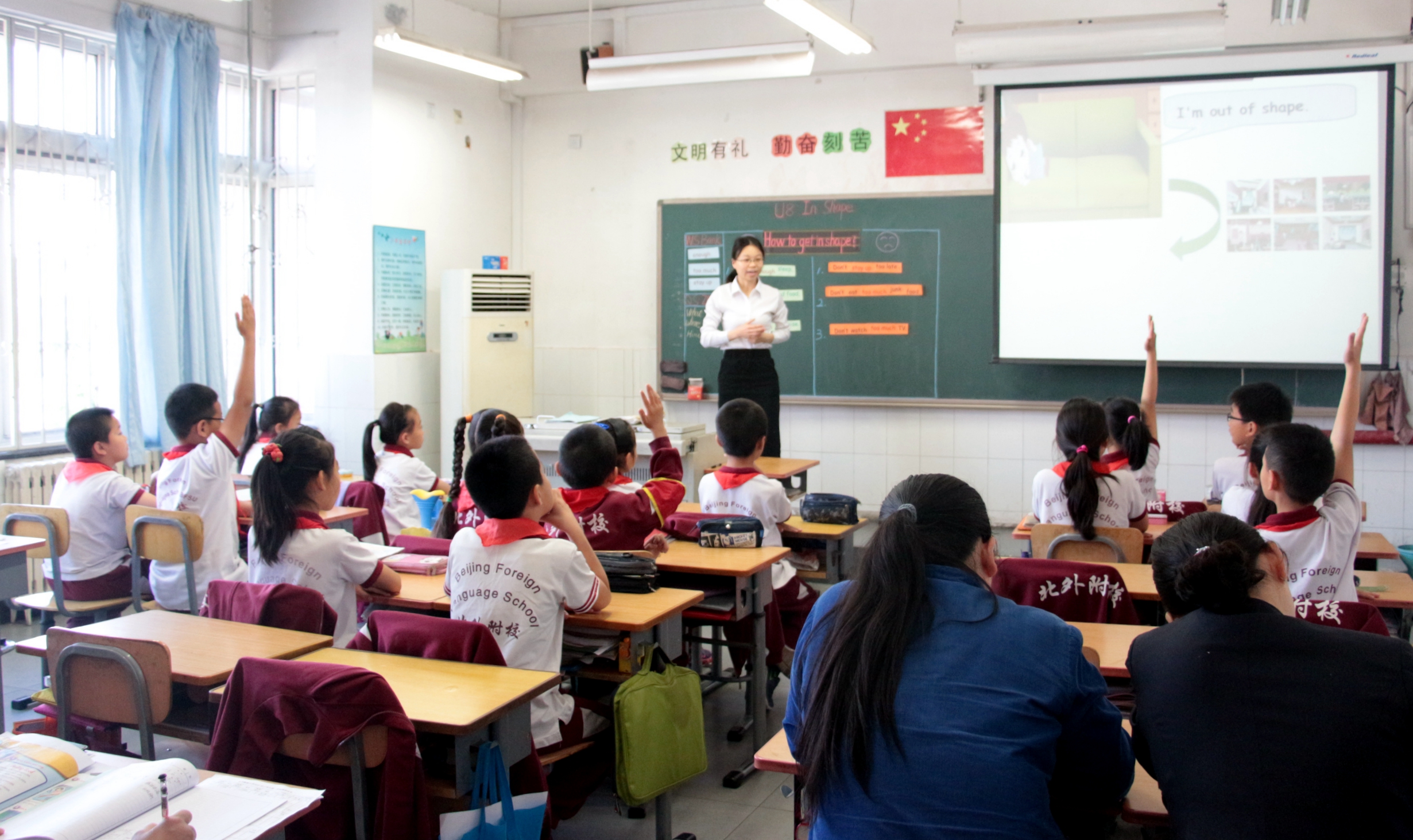 “同课异构”教学内容为: Backpack3 U8 A2 Get in shape。两位老师精心设计教学环节,根据自身教学特点,使同一节课的教学呈现出不同的授课风格。王艳萍老师的教学设计重在培养学生思维,以学生为主体,让学生独立思考,自由表达,重视语言学习在实际情景中的运用。黄媛老师教学设计新颖,将词汇句型的学习融入绘本阅读教学之中,引导学生主动思考,让学生进入生活情境,更好的理解语言。