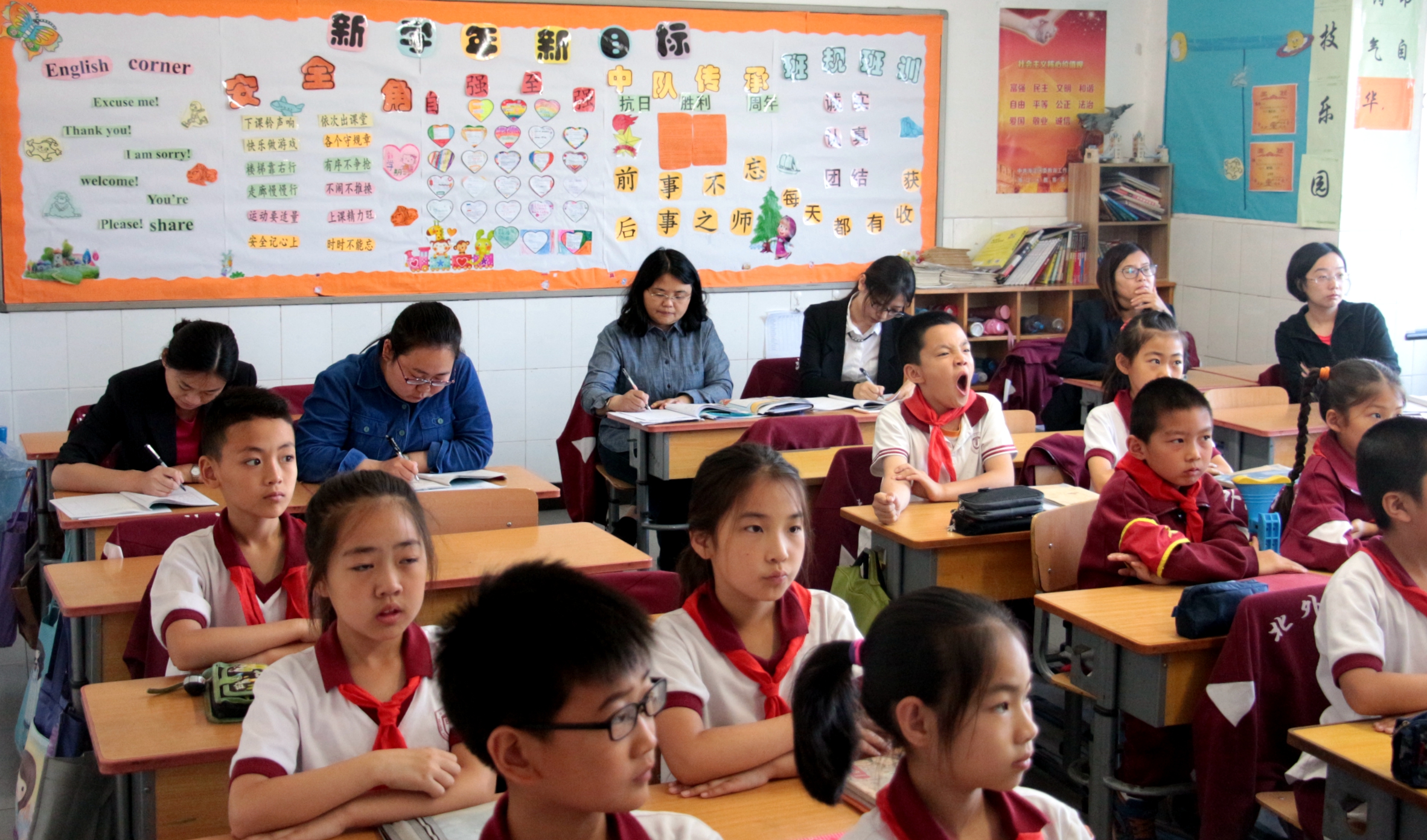 在评课的开始环节,组长宋花磊对本节课的教学内容进行了简单的介绍,并从教学设计、教学思路逻辑性、板书及学生参与度等方面对两位老师课堂设计的结构进行了整体的分析。评课过程中,于校长肯定了三年级备课组工作,整个团队教研氛围融洽。并针对两节研究课给出了专业的评价:两位老师的教学环节逻辑性强,教学内容丰富,板书规范,在培养学生思维的同时注重语言的实效性。在王艳萍老师的教学视频环节和黄老师的Role play 等环节,于校长给出指导性的教学意见:在观看视频环节,应布置任务,让学生带着问题边观看边思考,观看结束使学生有更多反馈;在黄媛老师的Role Play 环节,应设置有梯度的教学活动,避免活动单一,应把舞台交给学生,让学生真正成为教学的主体。于校长还提到,老师们的课堂教学正在逐步规范化。此外,全组老师也分别发表自己对课程的看法和改正措施。