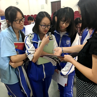 下午一点半,美国蒙赛罗大学的宣讲会正式在一阶拉开帷幕。高二、高三国际班的学生全部参加了宣讲会活动。宣讲会主要由Jon教授主讲。他先就毕业选择人才的情景提问设置了十个互动性问题,让学生在充分参与的情况下设身处地的着想未来毕业后用人单位究竟需要什么样的人才与技能。接着,他介绍到美国蒙赛罗大学目前设有8个本科学位专业课程,分别为游戏设计,视觉特效,视觉设计和数码视频,计算机信息技术,信息安全,现代网络通讯技术,工商行政管理和商业船业专业。2015年就业率高达91%,传媒艺术专业学生,就业率高达94%。最后,他向学生展示了本校各专业学生制作的关于游戏、数码设计等的精彩视频,赢得了全场学生的一致喝彩与热烈掌声。