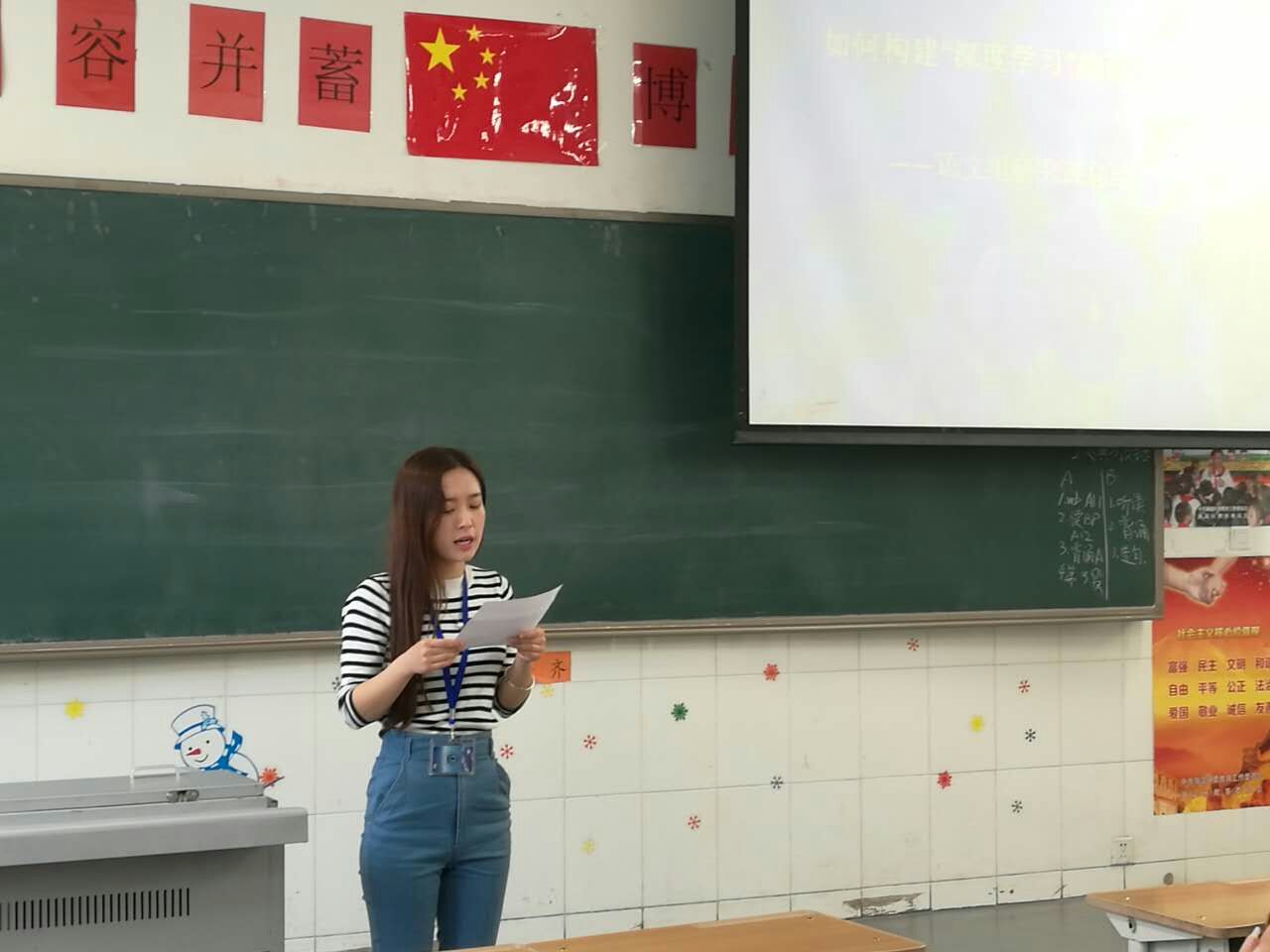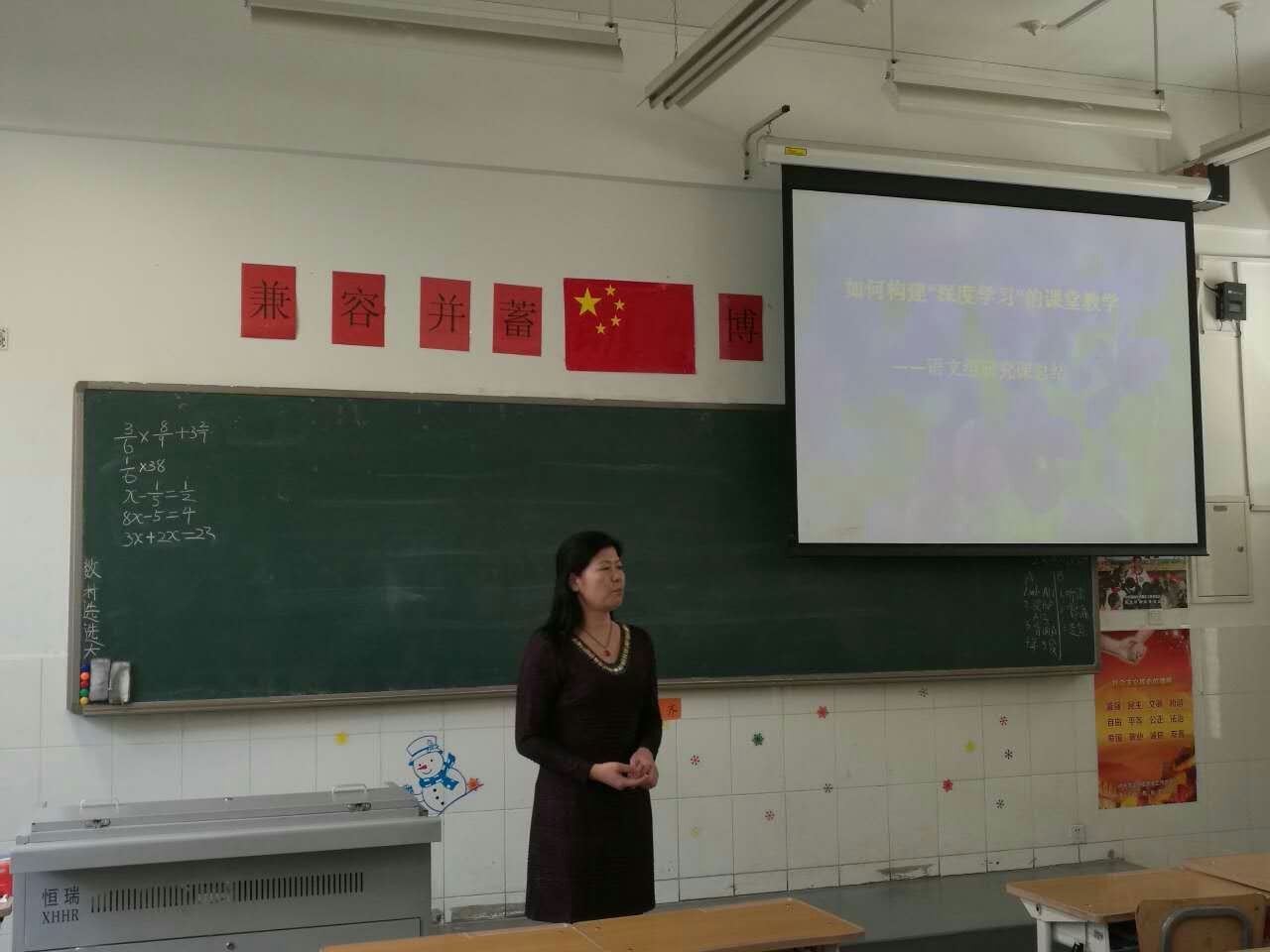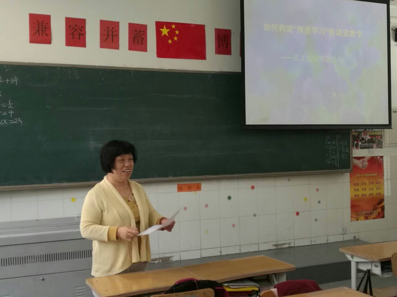 4月21日下午,我校小学语文教研组全体老师在五(7)班举行了“深度学习”课堂教学研究总结会。会议由教研组长石霞主持,小学副校长孟娜参加会议。