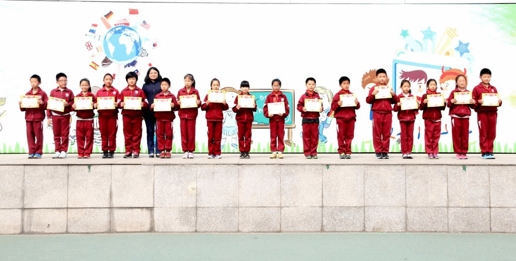 随后,副校长孙亚楠公布了师生获奖情况:我校陈修怡、张溪容、屈鸣成、铁婧妍、刘惠文等22名小学生在“第十六届华人少年作文比赛”中荣获全国三等奖。小学校长于苒为获奖学生颁奖。