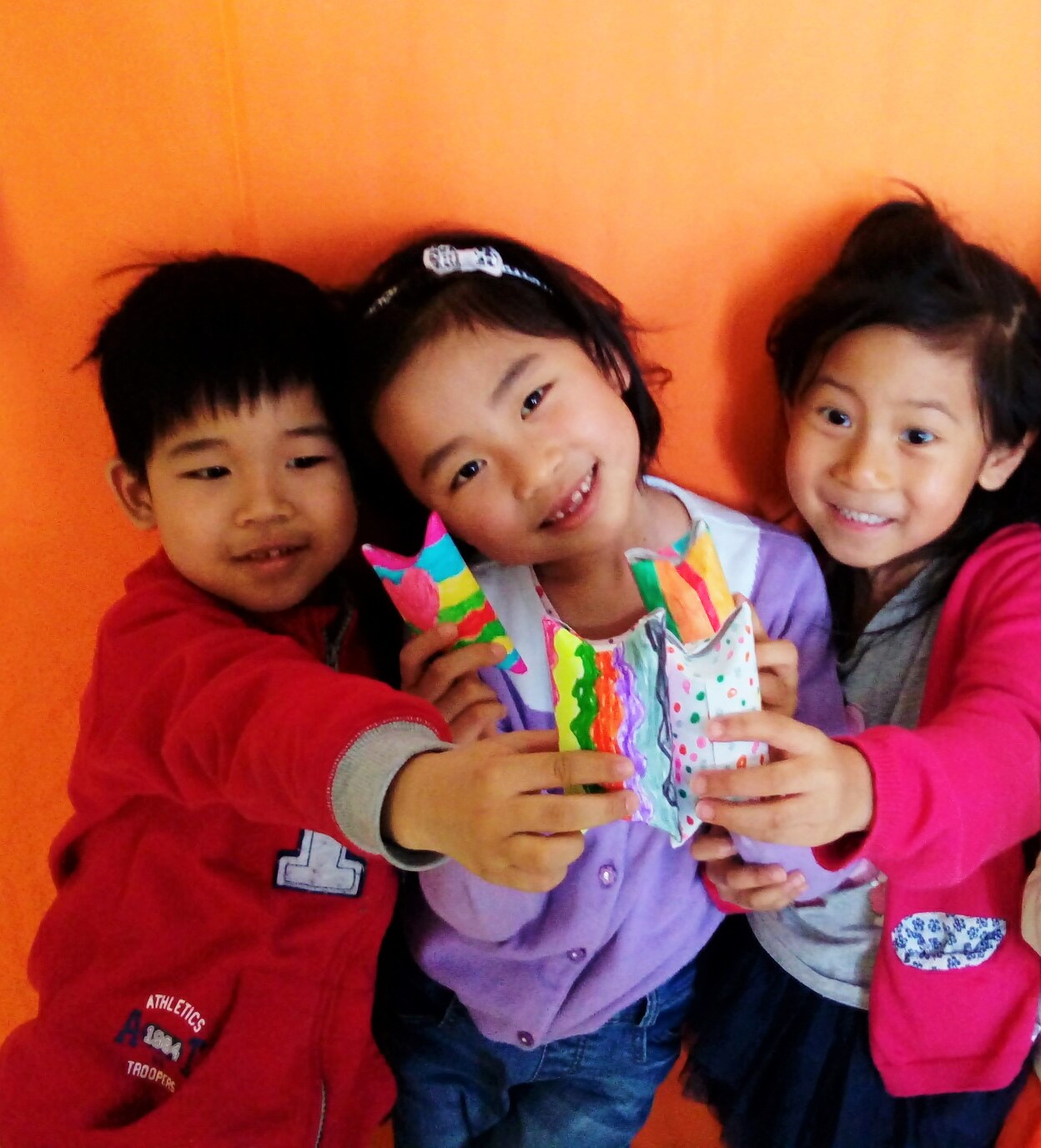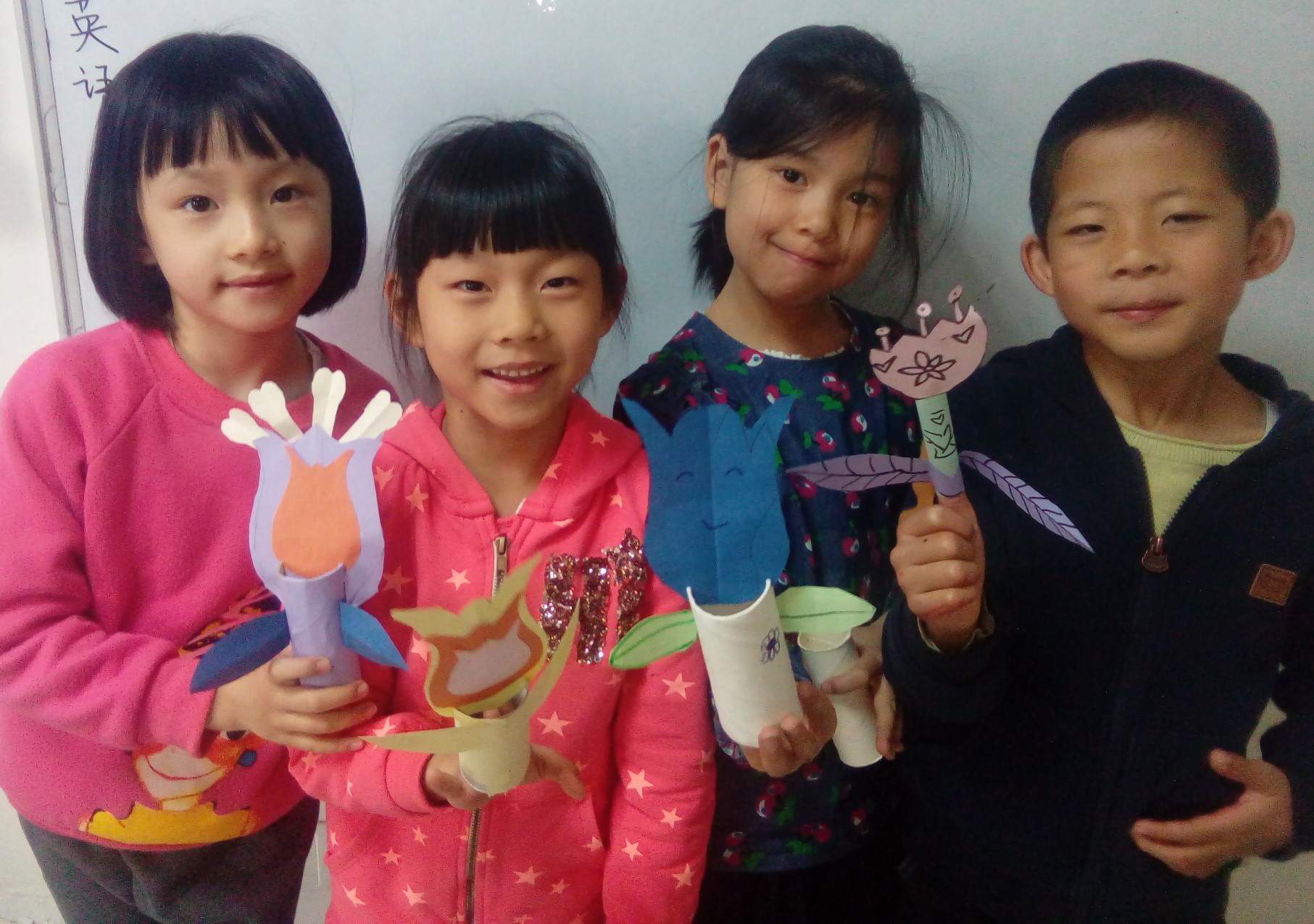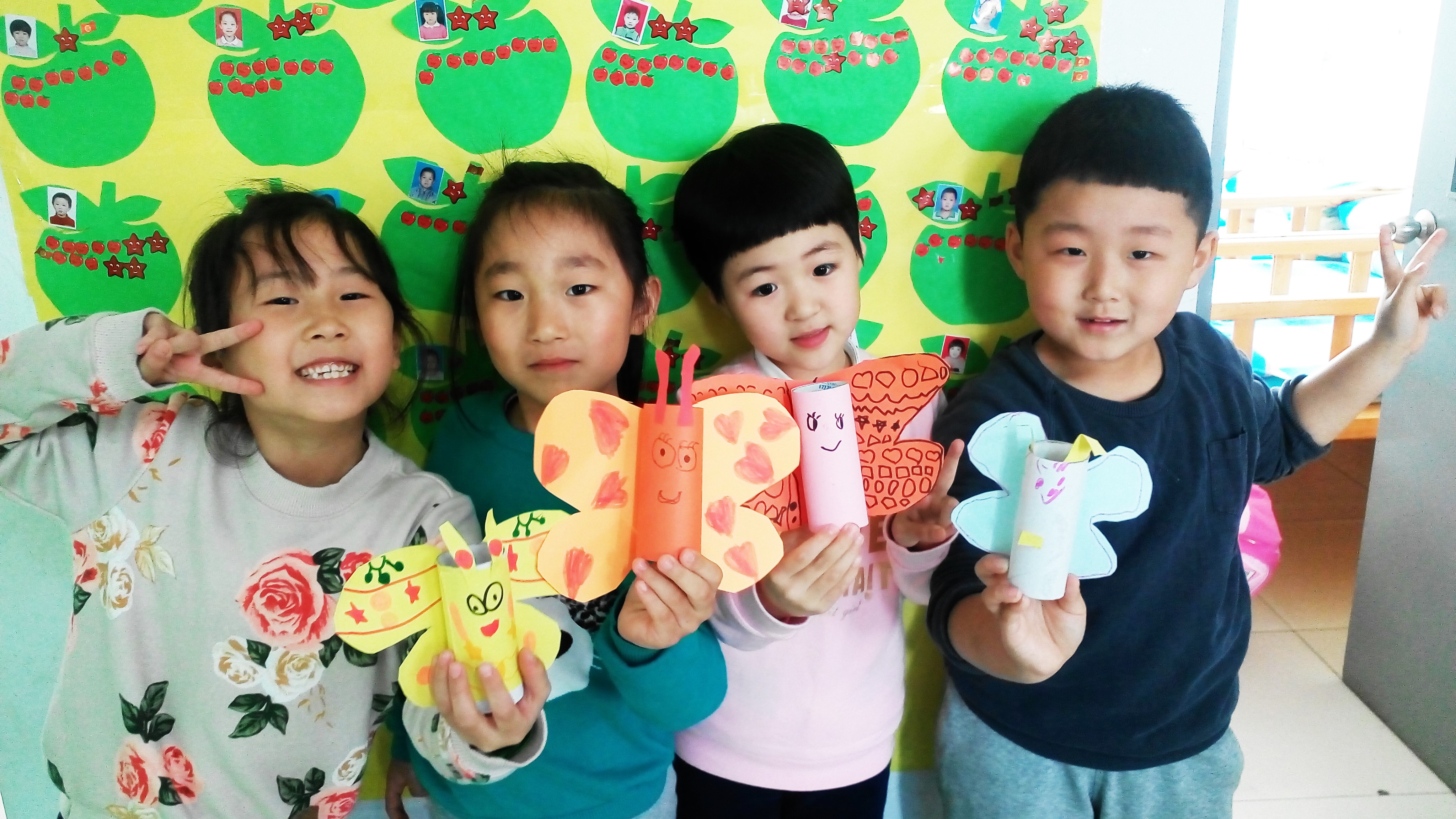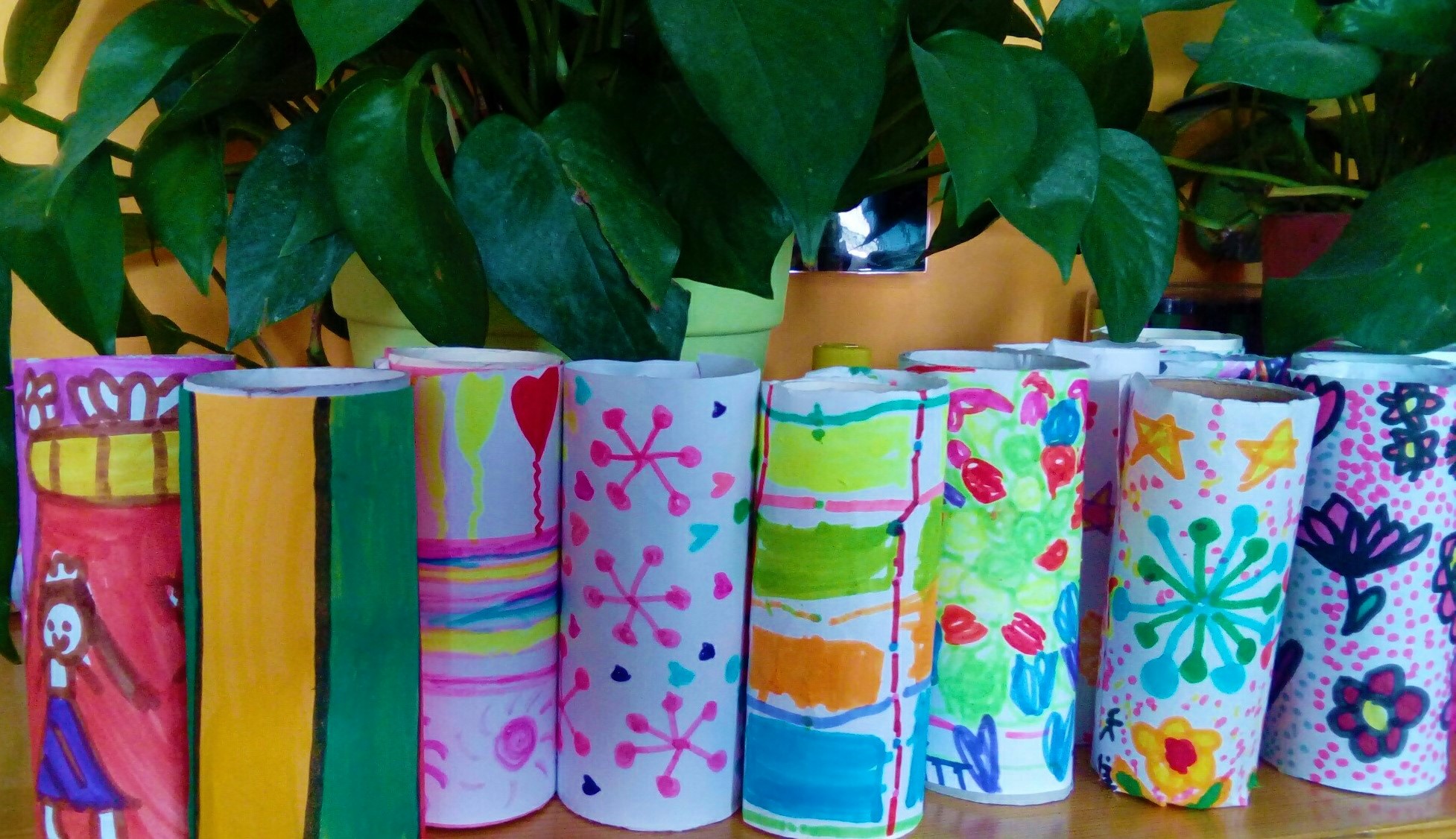 近期我校学前班的手工课开展 ——“纸筒变身秀”的活动。利用废旧纸筒制作一些简单的小装饰, 从小培养孩子们环保的理念和意识。从纸筒的简单装饰到小动物、小蝴蝶、小糖果、小花朵等等的设计制作。