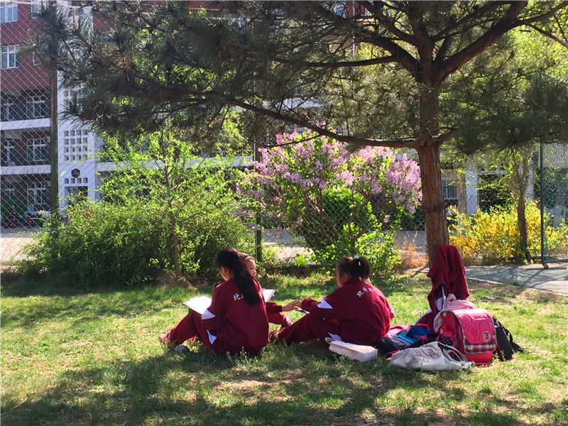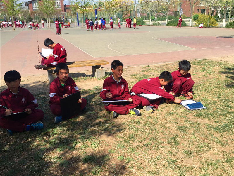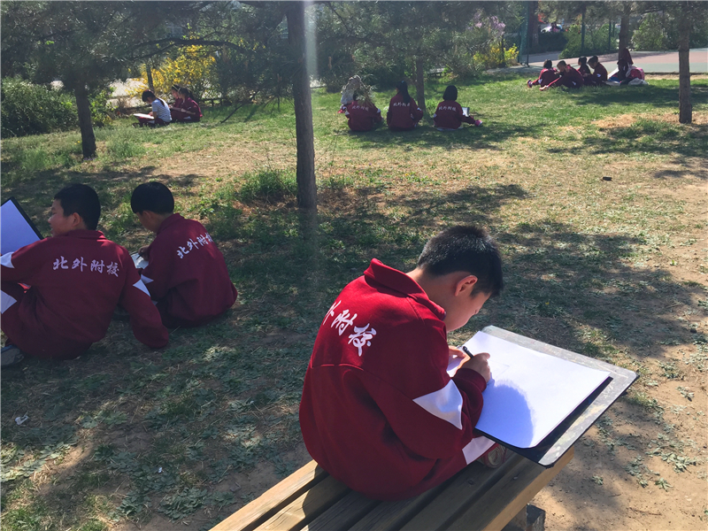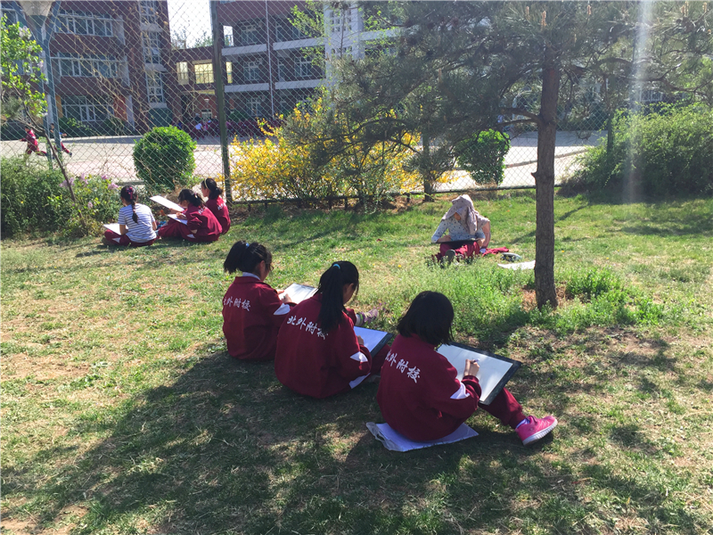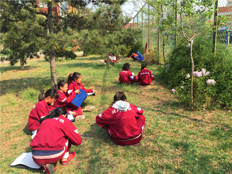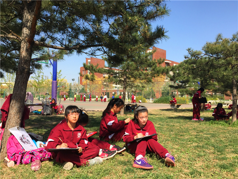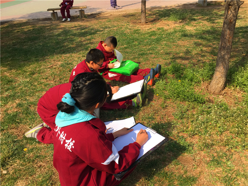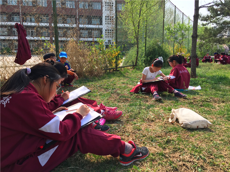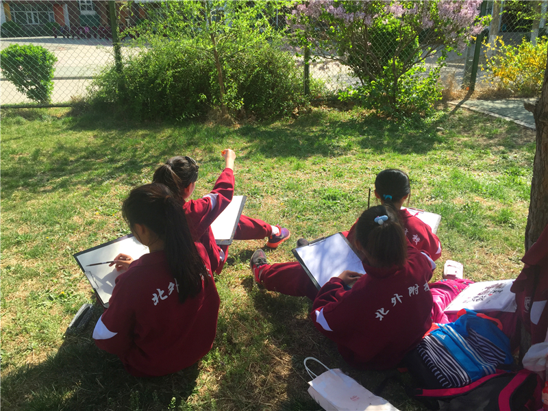 附校的校园春色是美的出奇的,欣赏这美景最好的方式就是用自己的画笔记录下来,老师带着五年级的学生们和校园的春色来了次亲密接触。