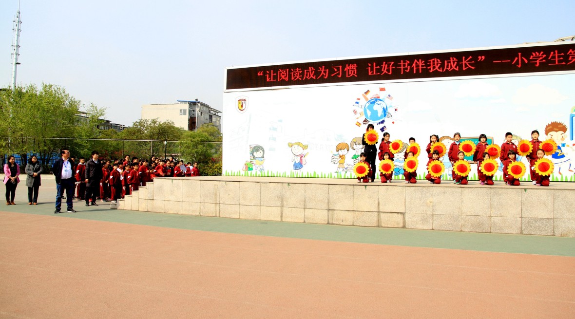 在“世界读书日”即将到来之际,小学语文教研组号召同学们积极参加“读书月”活动。一年级2班的郭月老师带领19名小学生进行了以 “让阅读成为习惯,让好书伴我成长”为主题的国旗下讲话,倡导师生大量地阅读好书,开阔视野,增加文化积淀。