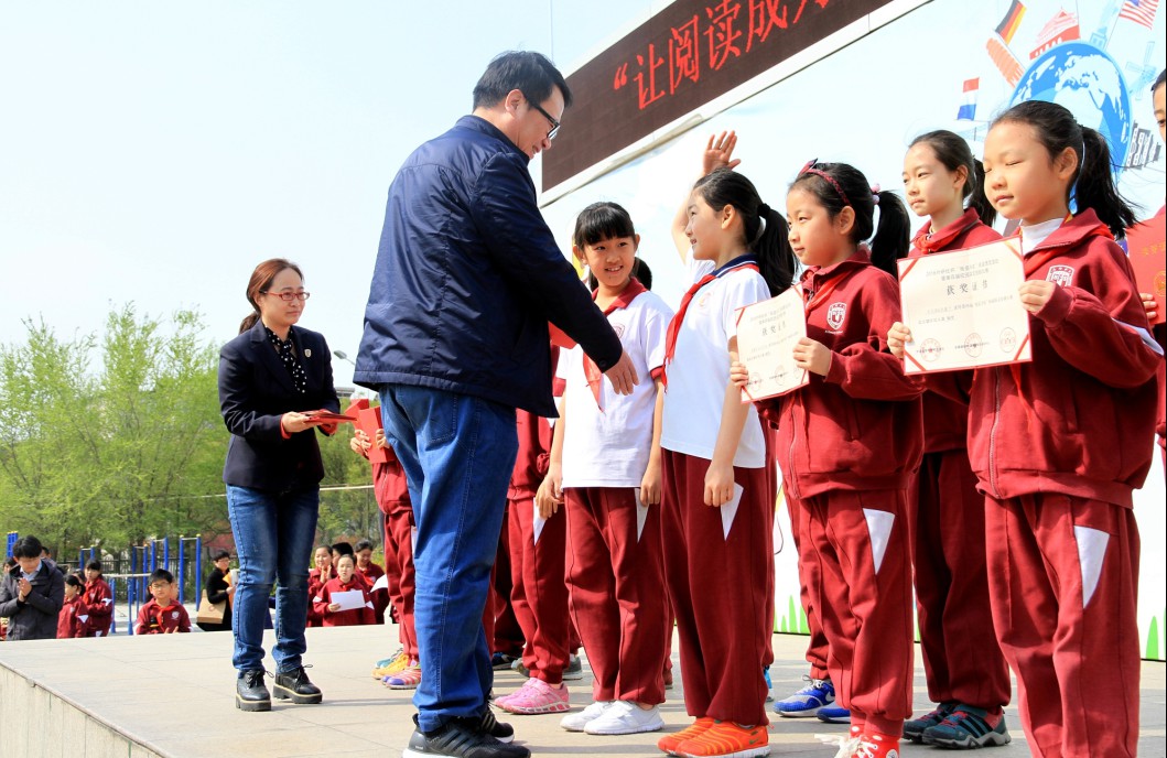4月11日,我校小学校区举行以“让阅读成为习惯,让好书伴我成长”为主题的第8周升旗仪式。校长林卫民,副校长、小学校长于苒,小学副校长孟娜、孙亚楠出席本次升旗仪式。