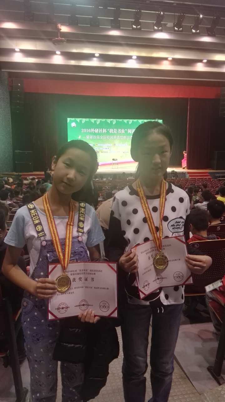 由外语教学与研究出版社、全国基础外语教育研究培训中心、牛津大学出版社联合主办的2016外研社杯“我是书虫”校园英文短剧比赛落下帷幕,我校初一年级学生张瑾姝、彭艺然同学荣获金奖。