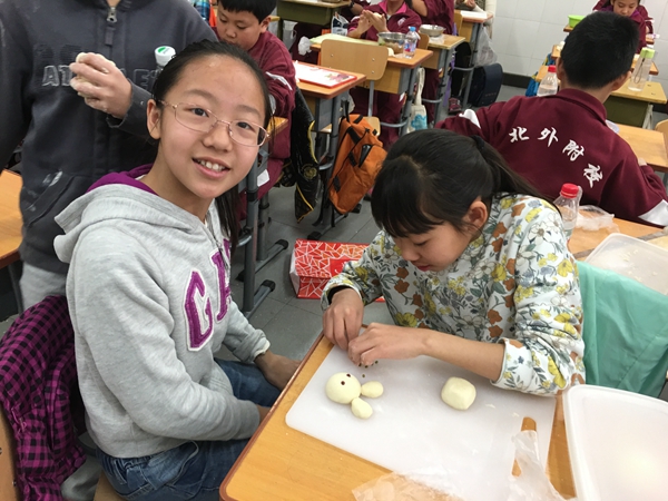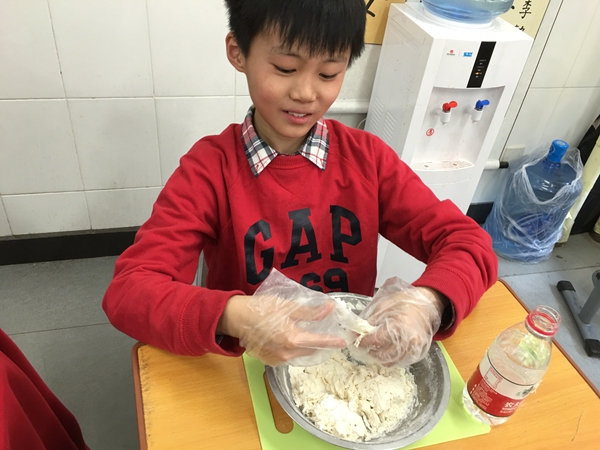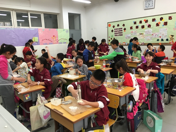 4月5日,小学部五年级四班的家长进课堂活动中,贾清然同学的妈妈教授班级中的孩子们制作手工小馒头。课堂上,贾清然的妈妈首先向同学们讲解制作馒头需要用的材料,水和面粉的配比。随后,亲身示范每一个步骤与细节。接着,让孩子们亲自动起手来投入到快乐的制作过程之中。最后,贾清然妈妈帮孩子们把制作好的馒头带回家蒸熟,在当天下午送回班级。孩子们品尝到自己的劳动成果,收获了满满的成就感。
