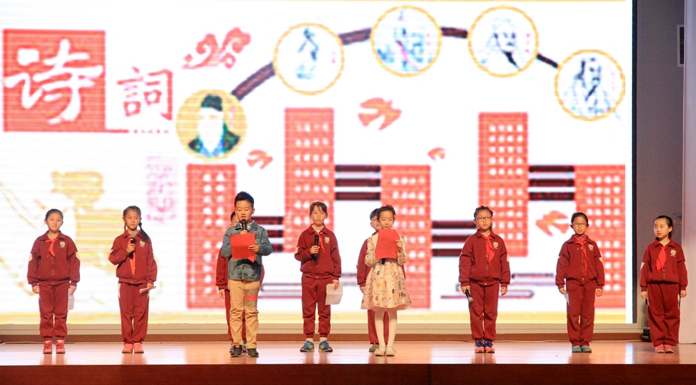 二年级学生代表不仅向同学们推荐了好书,还介绍了速读、略读、跳读的读书方法,让在场的同学受益匪浅。二7班王冉宸代表二年级同学向全校学生发出倡议,倡导同学们积极参与到此次活动中来。启动仪式上,二年级的同学们还集体背诵《笠翁对韵》选段,孩子们洪亮悦耳的读书声在国瑞厅上空久久回荡。