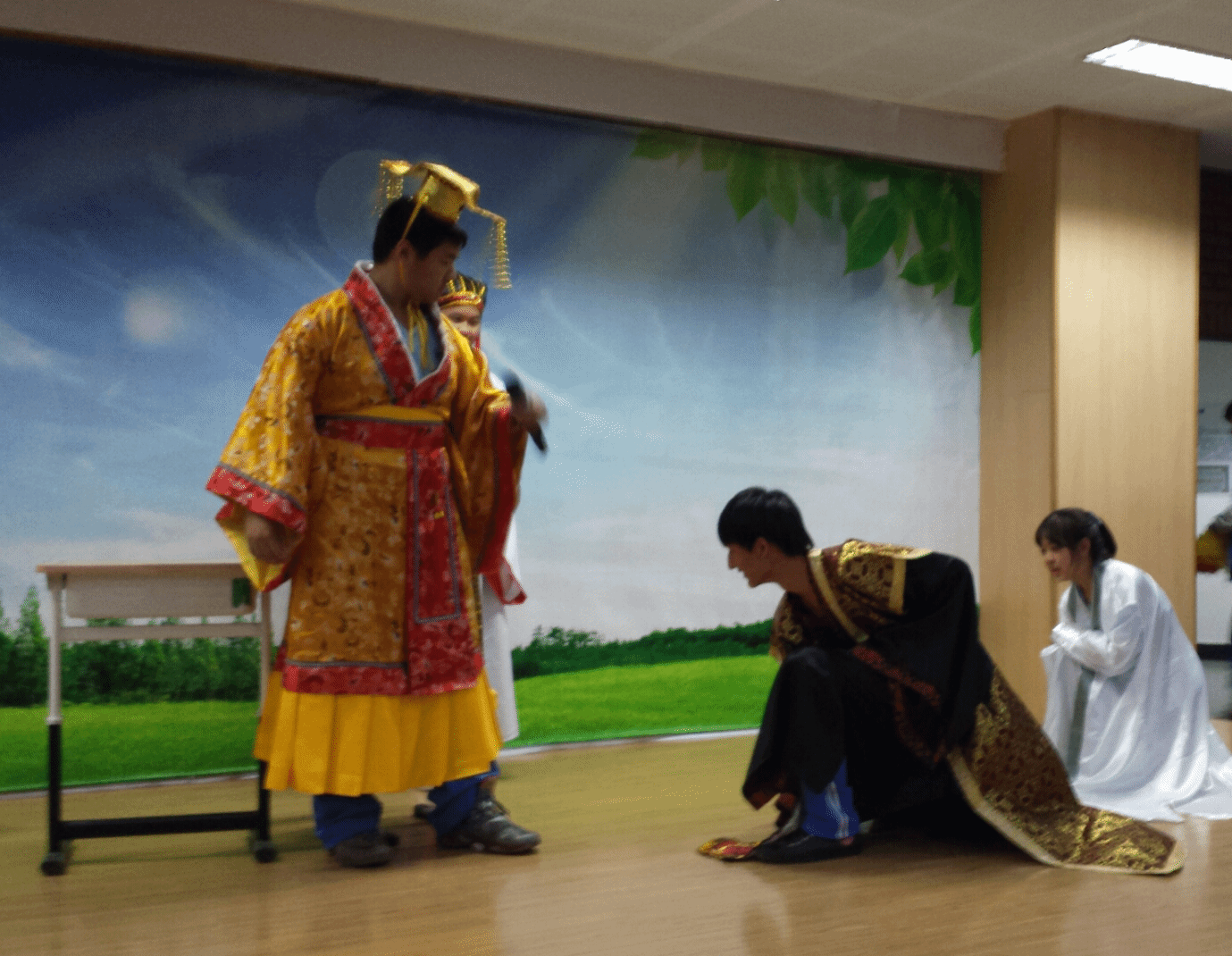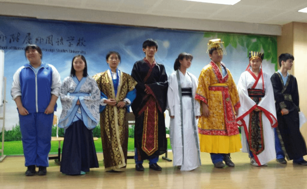 4月7日在我校第二阶梯教室举办的高一年级英语话剧比赛已圆满落下帷幕。这次表演的剧目是《花木兰》。高一年级七个班级根据之前分配分别参演《花木兰》一,二,三幕。高一三位英语教师担任评委,现场打分。比赛之前,各班学生利用中午午休和下午放学时间进行排练,从服装,道具到台词,表演都做了精心准备。比赛当天,场面热闹非凡,每个班级的演员都迫不及待地登台亮相。当主持人宣布表演开始的时候,大家顿时安静下来。台上同学精湛的表演技能和纯正的英语口语博得了台下同学阵阵掌声和不断喝彩。本次比赛充分贯彻了附校的外语节精神,同时锻炼了同学们的演技与口语表达,希望以后能够再多多举办像这样有意义的活动,使每个人都能从中受益。