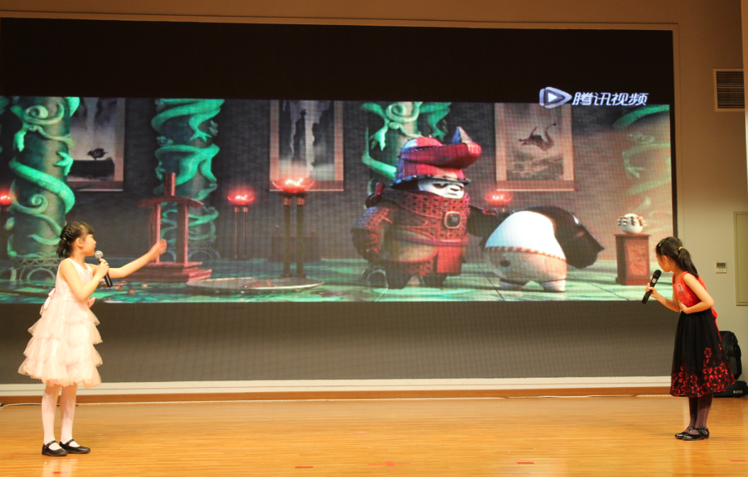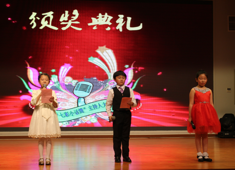 决赛暨颁奖典礼在国瑞厅隆重举行,三年级部全体师生参加。决赛共设有“红话筒”奖、“橙话筒”奖、“黄话筒”奖、“绿话筒”奖、“青话筒”奖、“蓝话筒”奖、“紫话筒”奖七大奖项。孙午琪同学的比赛内容为讲故事——《小猪的理想》;苏婉莹、石尚、冯思睿、张腾四位同学共同朗诵诗歌《献给老师的花束》作为比赛内容;王珞曦、张溪容两位同学进行了电影《功夫熊猫3》的英文配音。决赛,与其说是一场比赛,它更像一场微型演出。七名同学或独自,或相互配合,为在场的所有同学展示了优秀小主持人应有的口才和风采。
