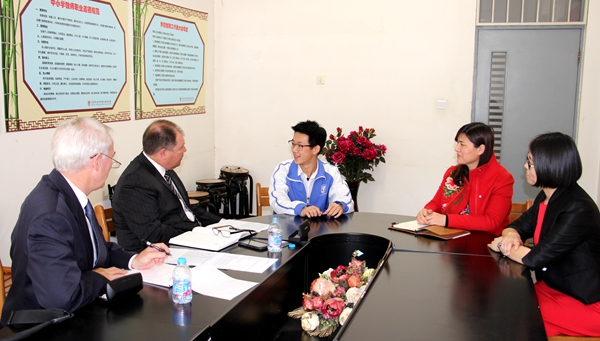 林卫民首先致欢迎词,向远道而来的朋友表示热烈欢迎。林卫民简单介绍我校的基本情况后,特别强调希望通过双方的合作为共同的学生提供一个安全的、优质的学习环境。他希望此次活动能加深两校之间的了解和友谊,为学生们两年之后的澳洲之行打下基础。Andrew Hirst博士对林校长的接待表示感谢,他介绍了汉密尔顿亚历山大学校的概况、教学和管理情况,强调学生在汉密尔顿亚历山大学校不仅会有学业上的发展,也会有安全而丰富的生活。