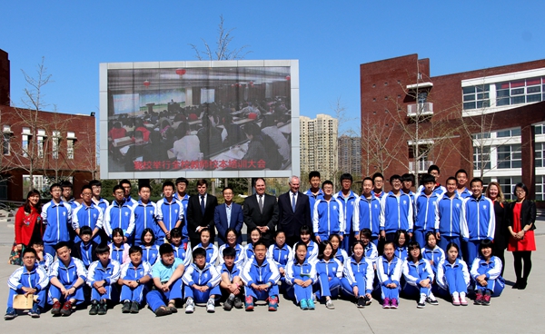 活动结束后,来宾一行与我校领导、VCE项目负责老师以及高一VCE班全体学生合影留念。