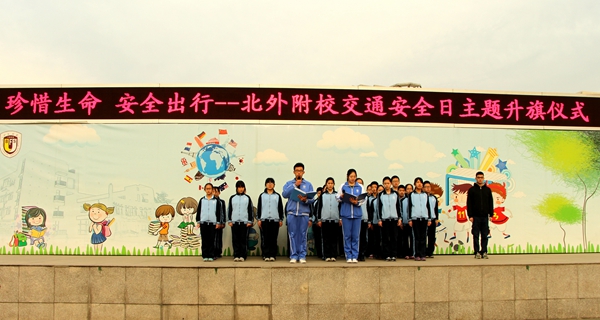 3月28日,我校举行主题为“珍惜生命 安全出行——交通安全日”的中学生第6周升旗仪式,来自高一年级的杨孟依和高三年级的梁浚哲分别用中英文主持升旗仪式。本周领唱国歌的班级是初一(4)班,升旗手为来自初一四班的肖亚畦同学。