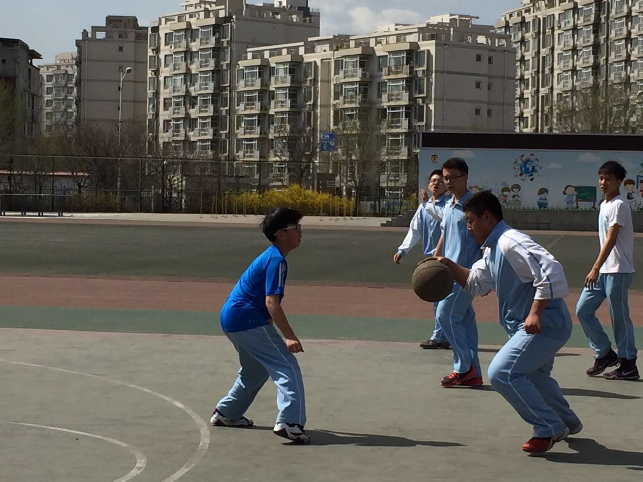 本着增进友谊、锻炼体魄、切磋球技的原则,我校于3月29日在校操场举行了初二年级篮球友谊赛。