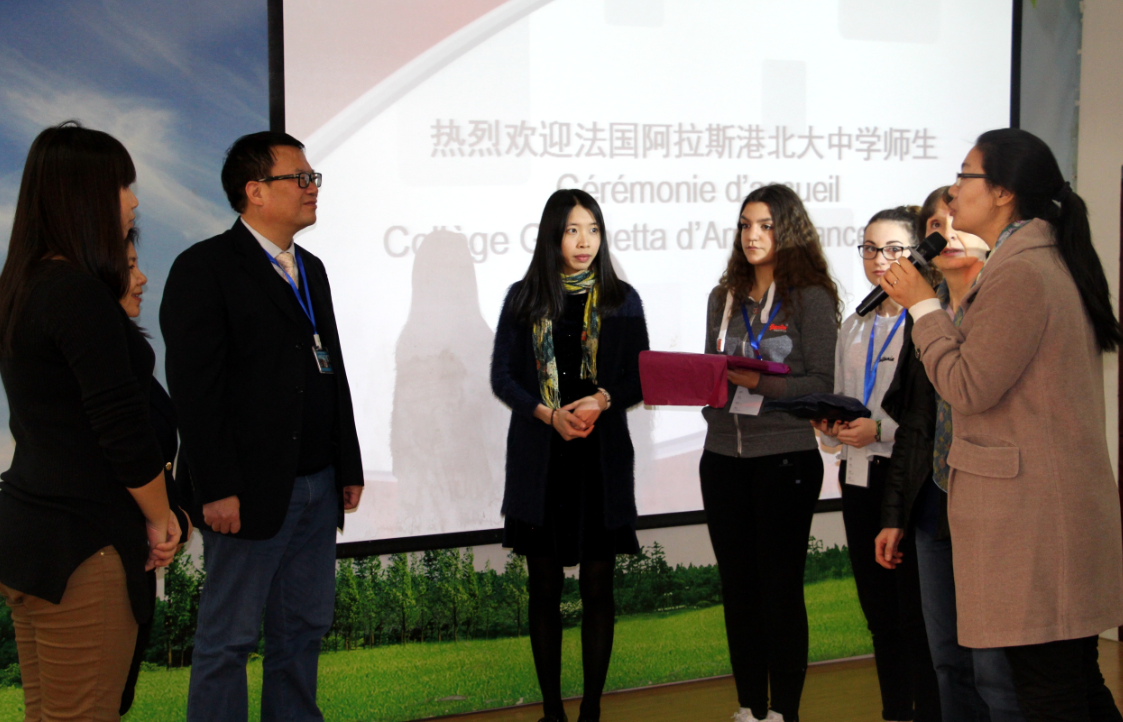 法国港北大中学是我校初中第一个深度交流的法国姊妹校,我校学生已于2015年9月底前往法国阿拉斯港北大中学交流学习,此番为该校首次回访。两校将以教育为纽带,加强合作交流,共同为提高学生语言水平、扩大学生国际视野、加快素质教育步伐、推动学校办学的国际化而努力。