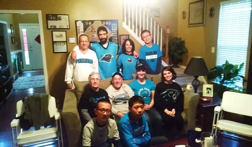 在美国家庭借住期间,刚好碰上了超级碗的决赛,全家上下齐欢庆,每个人都穿上专门的T-shirt,在家中开了个大party,不怎么精通橄榄球的我也专心地看着并理解(我可能是屋里面唯一一个期盼广告到来的吧 )。