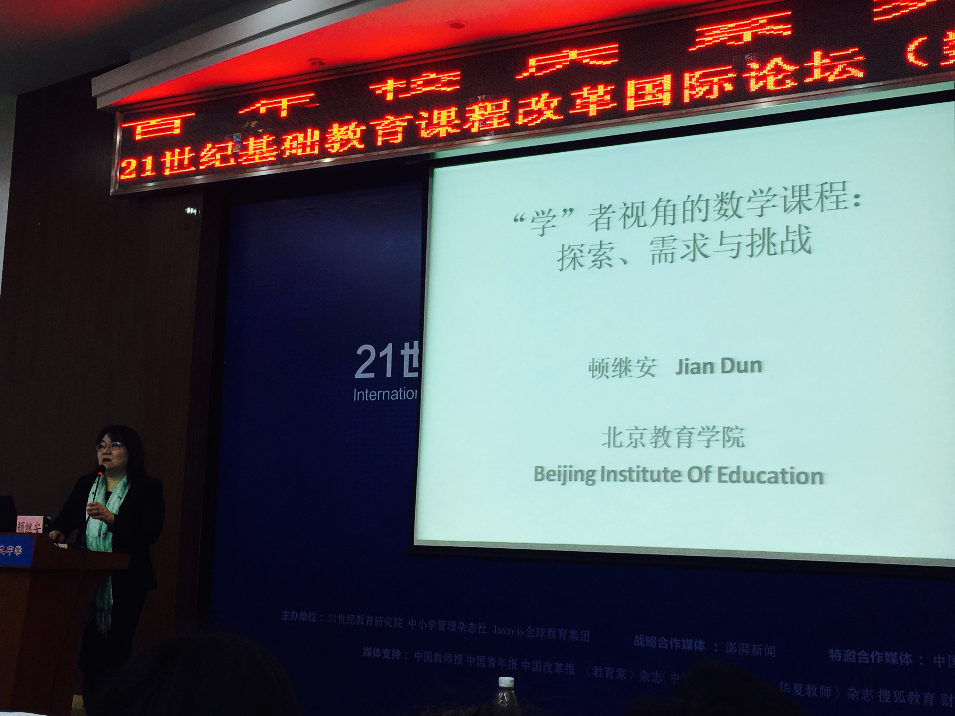 2016年3月25日,我校高中数学组教师单玲、李妍、李明辉老师在十九中参加了由21世纪教育研究院、《中小学管理》杂志社、Javreis全球教育集团主办的21世纪基础教育课程改革国际论坛数学专场。