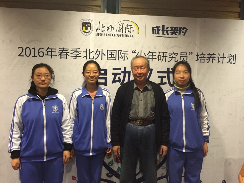 在3月11日,我校高一年级刘佳贺、李奕、何羽嘉、刘伯丹四位同学参加了由北外国际推出的“成长契约”中学术素养之“少年研究员”培养计划的启动仪式和授课部分的第一次讲座。