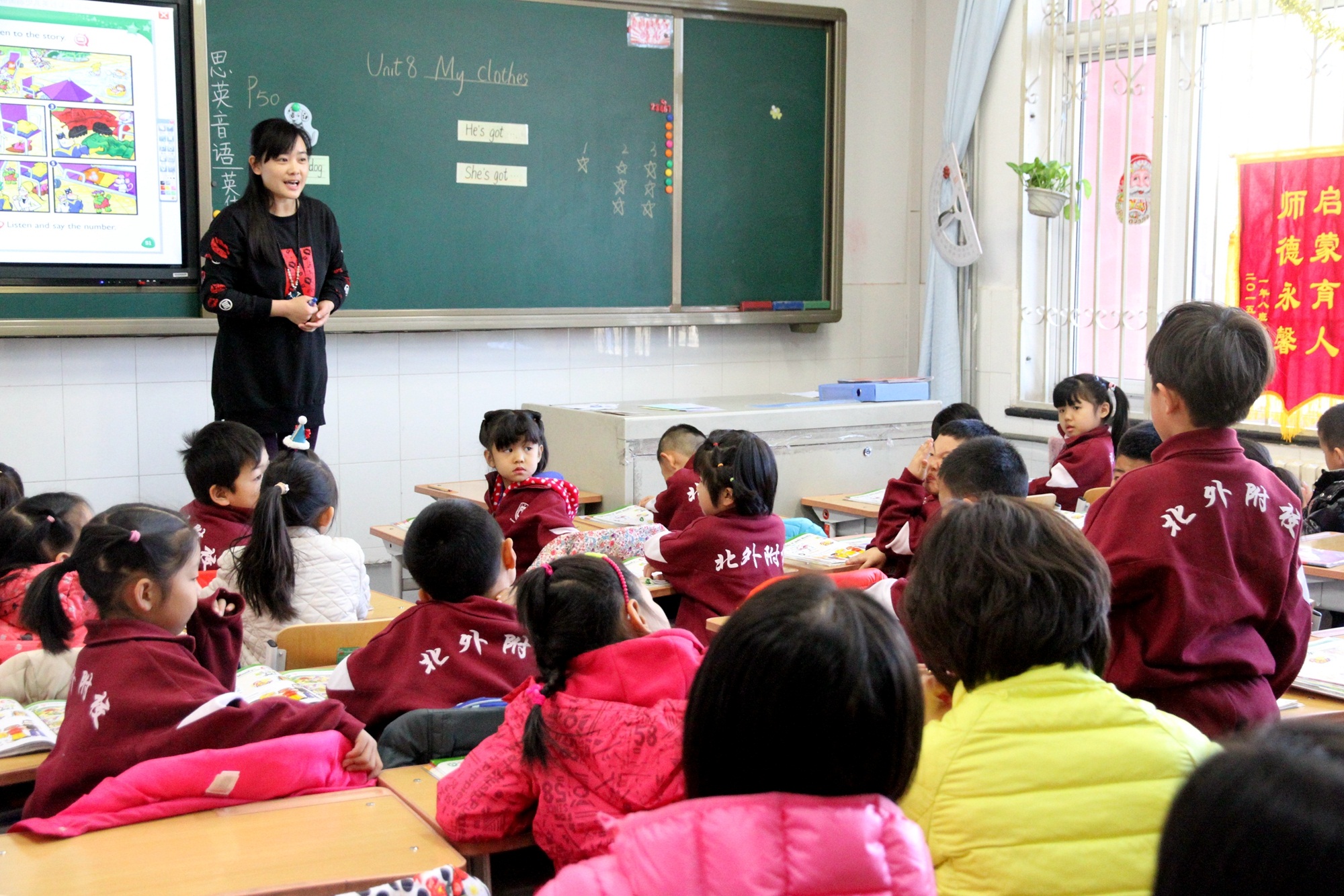 林生香老师一行人听了我校小学一年级贾科君老师的一节Kid’s Box语音课。本节课贾老师熟练运用外研社的教学辅助系统,电子课件和网络资源,板书简单明了,评价及时准确,整节课气氛欢快。