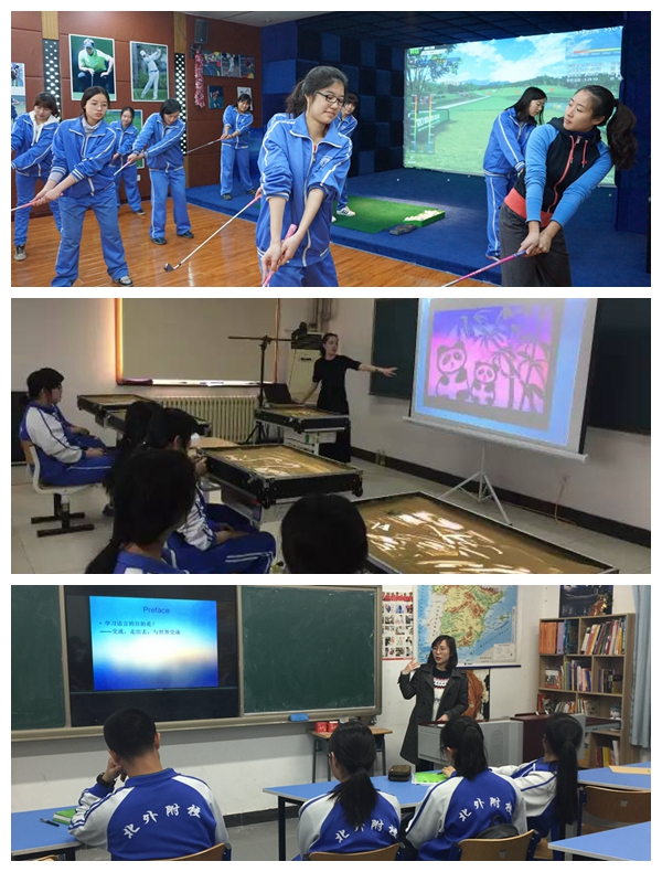 除了选课形式的创新,本学期高中校本课程的内容也丰富多彩。为提升学生的综合素养、为学生发展搭建多样化的平台,本学期高中整合我校和培训中心的优质教学资源,在上个学期开设的校本课程基础之上,又开设了沙画、书法、射箭、高尔夫、雕版印刷、跨文化教育等相当有吸引力和特色的课程。书法和富有创意的沙画课程使大家感受到了非凡的文化气息和艺术风范;新开设的射箭和高尔夫课程,学生们也乐享其中;跨文化教育课程带着同学们了解、感受英、美国家文化的特点,国际形势的变化;雕版印刷课程更是学校特聘专家,向学生们介绍中国非物质文化遗产——雕版印刷技艺的重量级课程。
