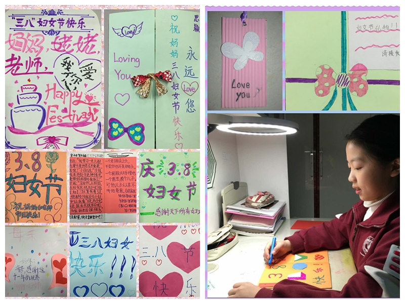 寄宿班学生,虽然没有在这个温馨的节日里当面对妈妈献上祝福,但是有的学生写下了以“感恩妈妈”为主题的日记,字里行间透露着对妈妈的感激之情;有的学生精心制作了漂亮的贺卡,卡片上那一句句“妈妈,祝您节日快乐!”、“老师,您辛苦了,我爱您!”展示着孩子们一颗颗真诚的心。