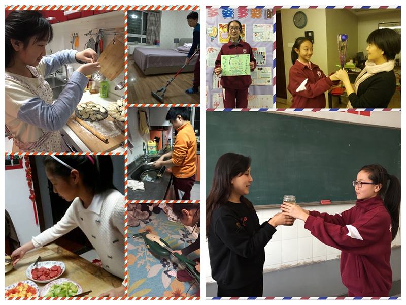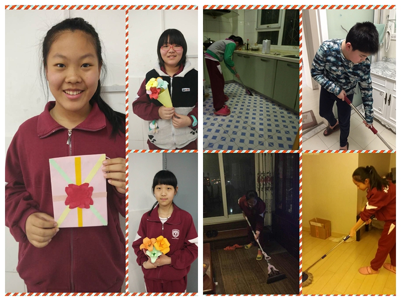 另外,半寄宿班的学生将“我帮妈妈做家务”、“紧紧拥抱妈妈一分钟”等课外实践作业带回家,用实际行动表达着对妈妈的爱。
