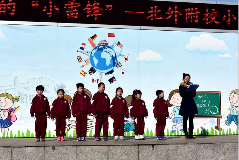 国旗下讲话结束后,全体一年级学生高唱《学习雷锋好榜样》。一年级学生精神饱满,歌声嘹亮。从他们的脸上,可以看到他们立志“做新时代的小雷锋”。