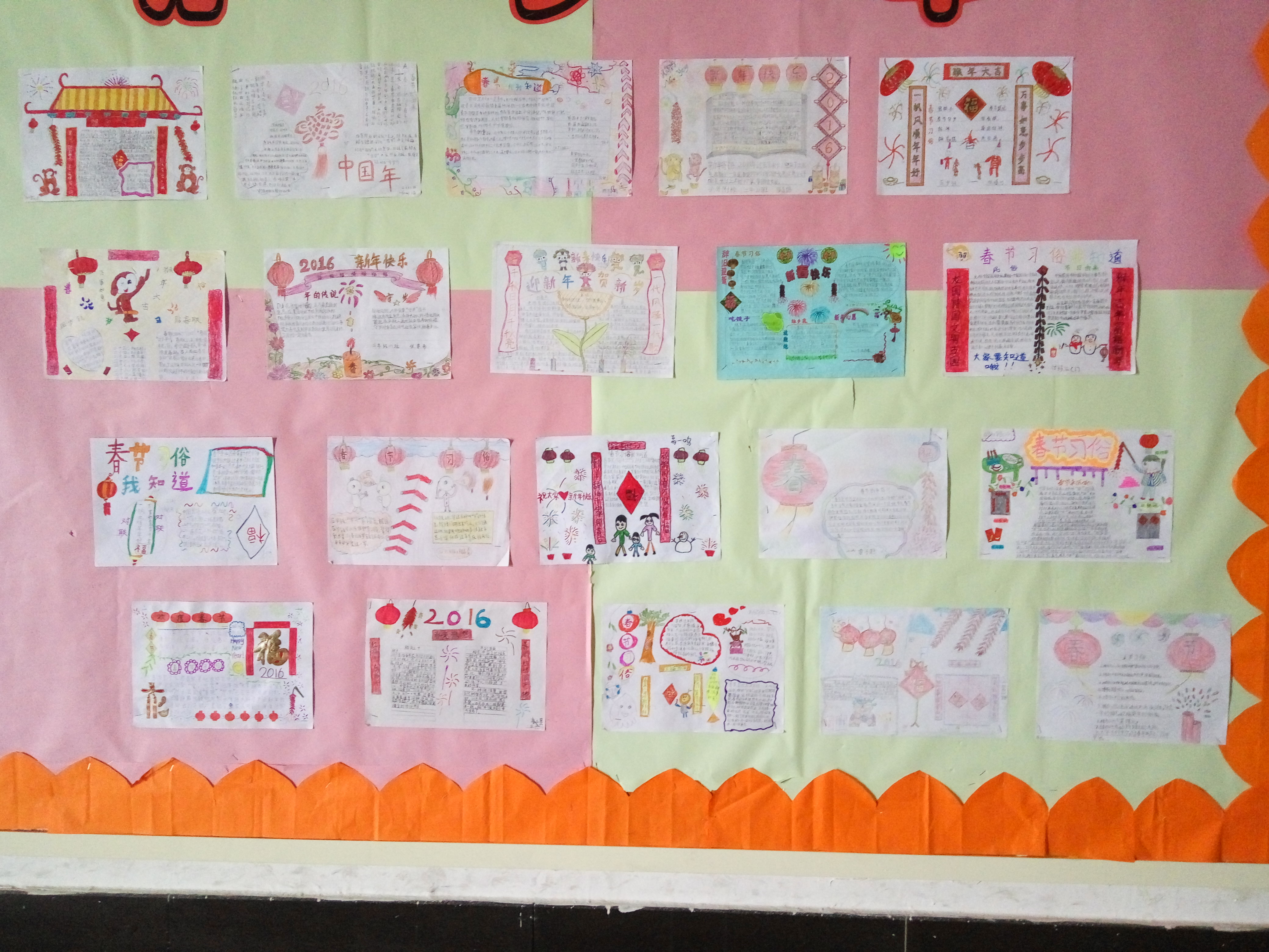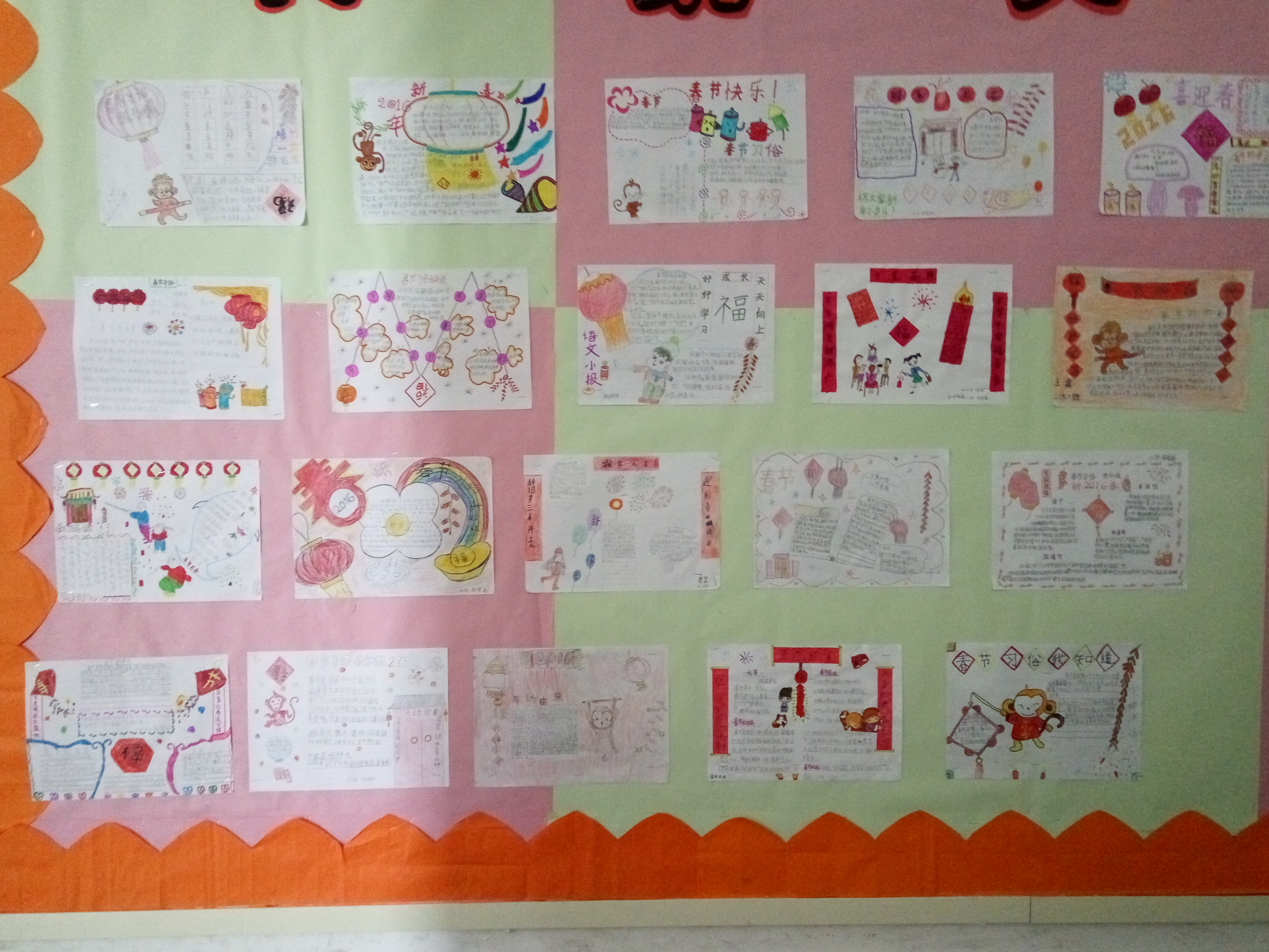 春节是我们中华民族最隆重的传统佳节,是中国最盛大、最热闹、最重要的一个古老传统节日。此次二年级语文寒假作业就是围绕春节来设计制作手抄报。孩子们有的围绕春节的来历设计,有的从贴春联、挂灯笼入手,有的结合描写春节的古诗展开,有的介绍了春节期间的饮食文化……孩子们运用各种方式,或剪或贴或画,内容丰富、图文并茂地介绍了春节的习俗。