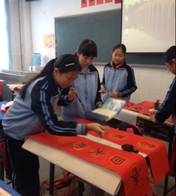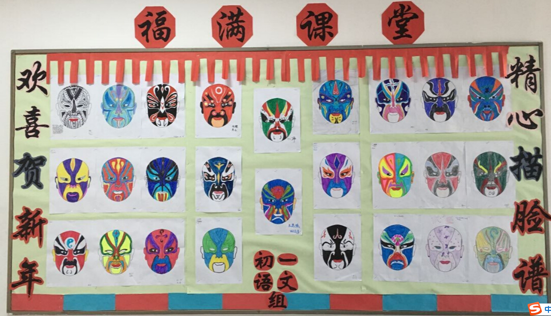 此次写春联的活动既是对学生寒假作业的别样的检验,也是在进一步提升学生对中华优秀传统文化的认知程度。此外,初一语文组还带领学生了解戏剧知识,描绘京剧脸谱,布置脸谱作品展,这一切都帮助学生了解了中华璀璨悠久的历史文化,也激起了他们学习语文的深厚兴趣。