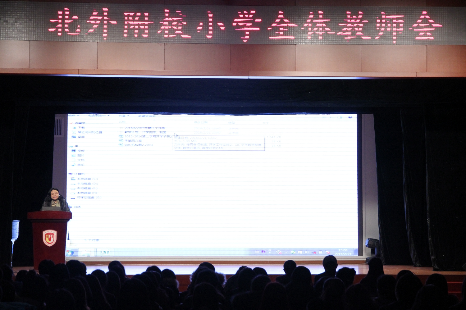 2月21日下午,新学期第一次小学教师大会在国瑞厅举行。会议由小学教务处副主任于苗苗主持,小学校长于苒、小学副校长孙亚楠以及小学教务处主任李琳分别就本学期主要工作做了布置。