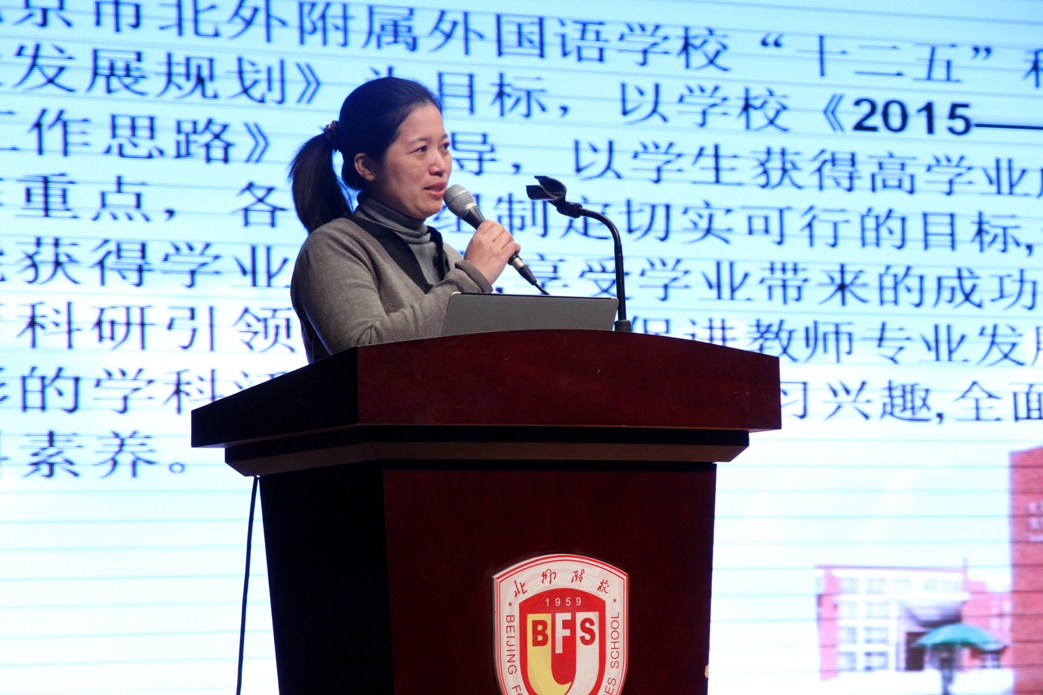 李琳对新学期的教学工作计划进行解读。要正确理解并切实落实北外附校“崇尚朴素、反对奢靡”的教育理念,认认真真地备课、上课、改作业、辅导学生,认认真真地做与学生谈话,狠抓课堂教学常规,花大力气培养学生的学习兴趣,全面提升学生的学科素养。以教育科研引领教师队伍发展,促进教师专业发展,开展丰富多彩的学科活动。各个学科教研组要进一步思考:在新的学期我们要继续做什么?重点工作仍然是常规管理、课堂教学、课程建设及学生发展四个方面,要完善规章制度,提高执行力;提倡平实、简约、突出核心知识和素养的朴素课堂教学;做实基础课程,突显学科特色;促进学生的高学业成就水平。