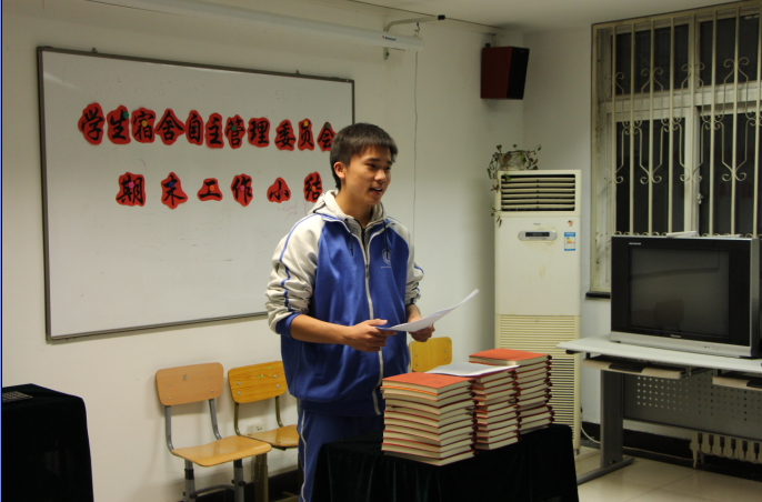 首先,男生宿舍干部冯禹铭同学对本学期主要工作进行总结,总结内容从学委会工作精神、第四届学委会组建(包含女生学委会组建)、宿舍安全和纪律巡查,返校安检工作,成功协办心理室主办的“发现你的美,让爱驻我家”温馨宿舍师生互动点赞活动。各项工作提高了宿舍干部的组织管理能力、增强了学委会团队的凝聚力,随后李丹为优秀干部进行慰问表彰颁奖。