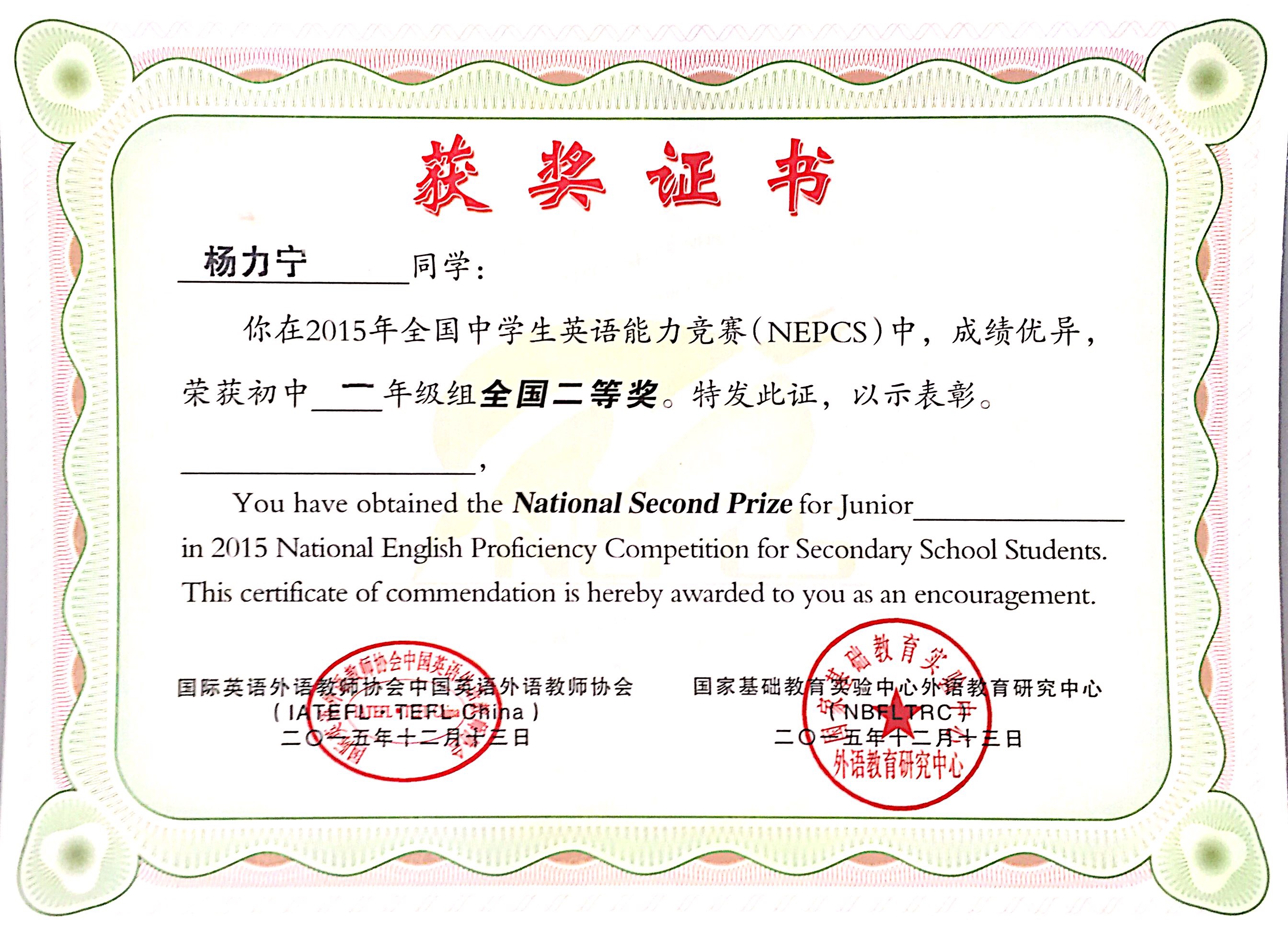 全国中学生英语能力竞赛(National English Proficiency Competition for Middle School Students,简称NEPCS),是经教育部正式批准的目前我国中学英语唯一的全国性权威学科竞赛,也是全国规模最大的英语学科竞赛,是我国基础外语教育的重要奖励机制之一,是面向全国中学生举办的综合性英语能力竞赛。自从1991年至今,全国中学生英语能力竞赛已经成功地举办了20多届,全国32个省(自治区、直辖市)(包括台湾在内)逾六千万名中学生参加了此项竞赛。NEPCS初赛和决赛的赛题都是由全国竞赛组委会统一命制,既考察学生的英语基础知识和基本技能,又考察英语综合运用能力、学习能力和智力水平。