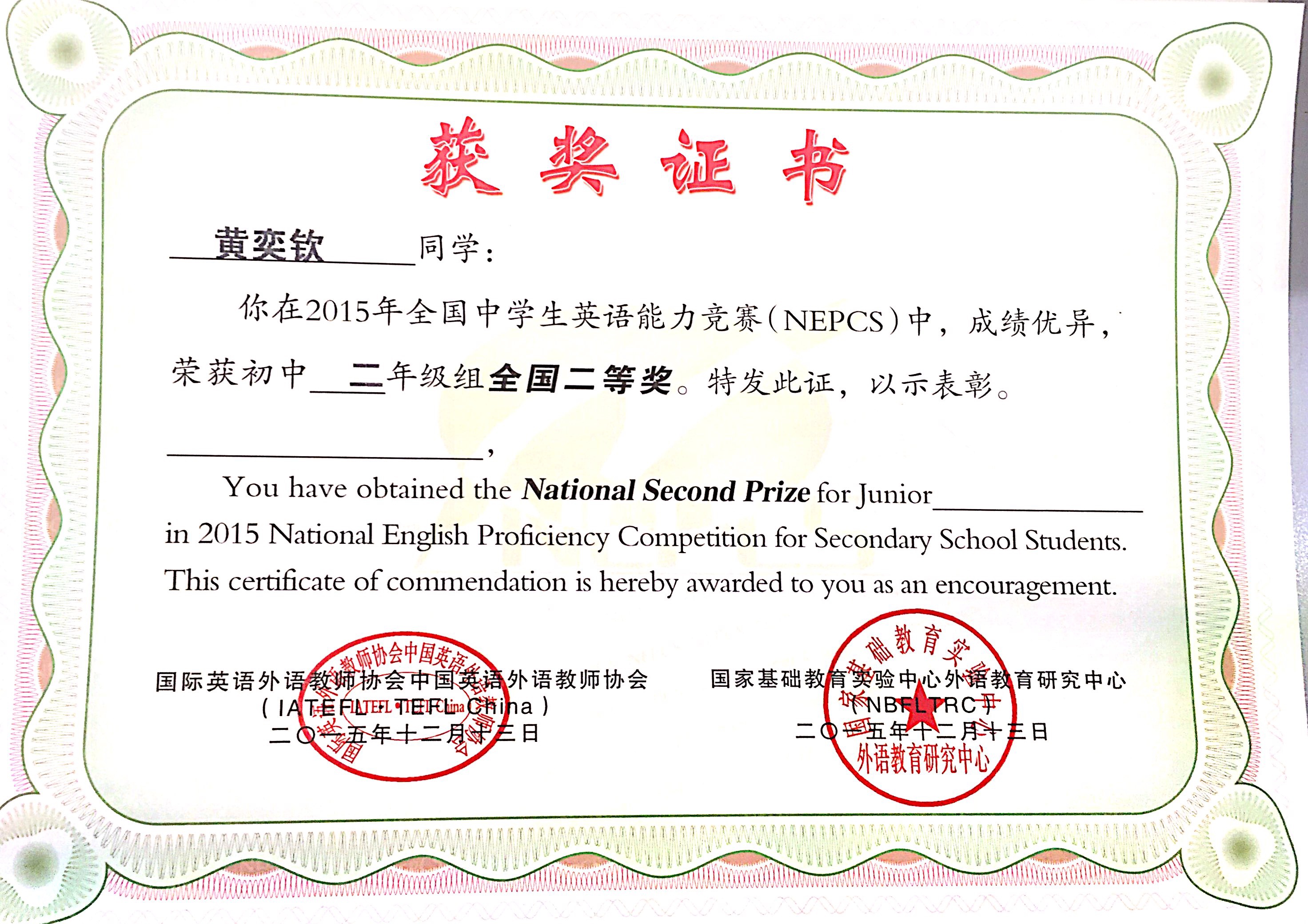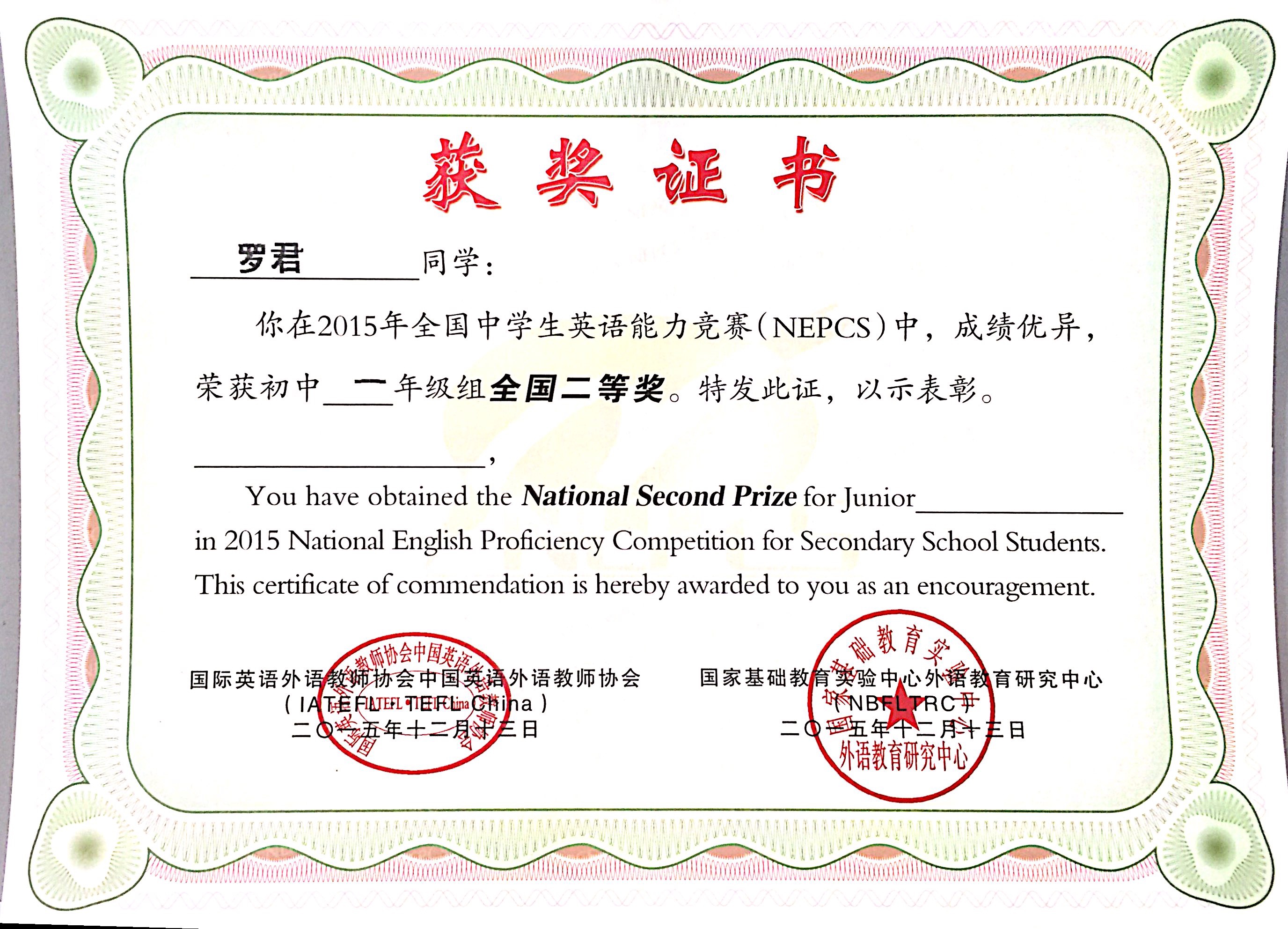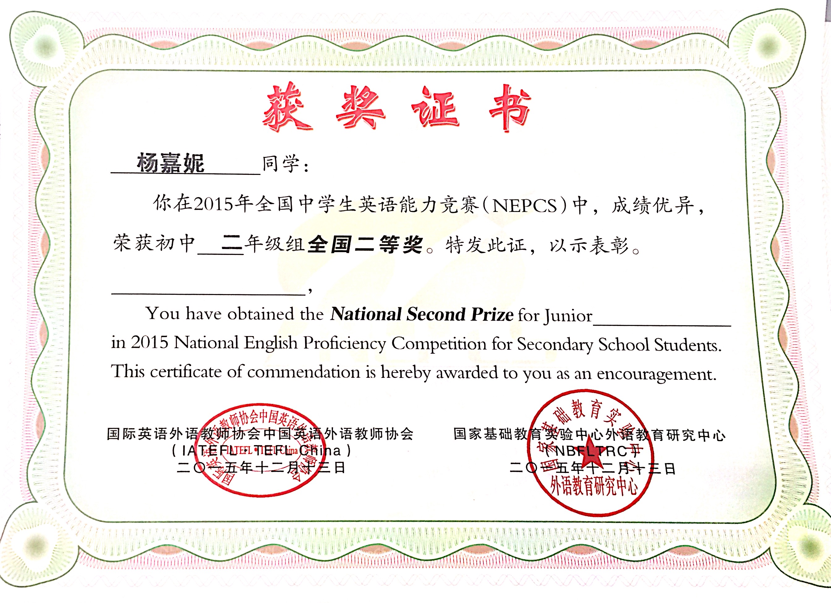 近日,我校初一、初二部分学生参加了全国中学生英语能力大赛的决赛,并取得了优异的成绩。