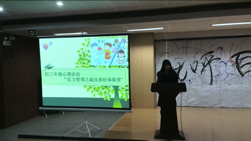 12月28日,初三年级开展“压力管理之疏压放松体验营”主题心理活动。初三年级全体学生及班主任参加了此次活动,活动由学校心理室李丹老师主讲,初三年级组长李萍老师主持。
