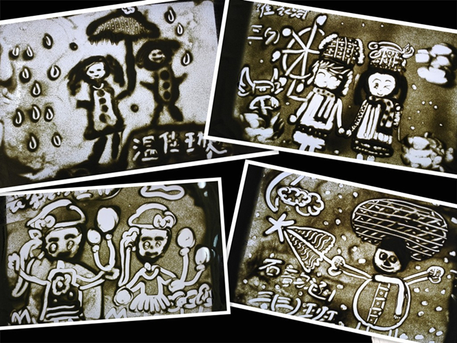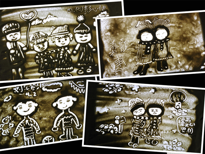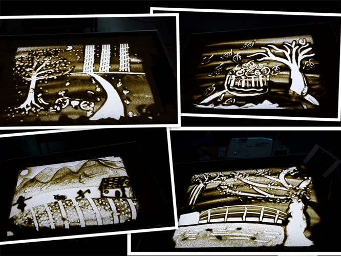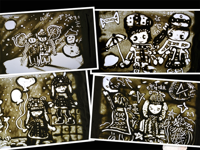 一把普通的黄沙,到了孩子们的手里,就变成了金沙。他们用手里的沙子,通过一撒、一抹、一勾、一捏,为我们描绘出一幅幅动人的作品,给我们带来一种特殊的视觉感受。从孩子们的作品中,我们能感受到他们与朋友间珍贵的友谊,能体会到他们对小动物对大自然的热爱,让我们一起来感受下孩子们作品的魅力吧!