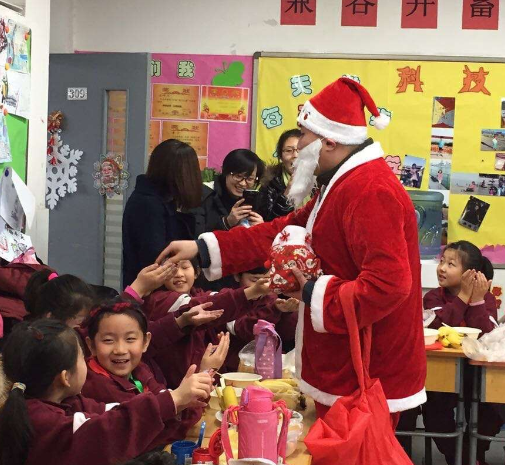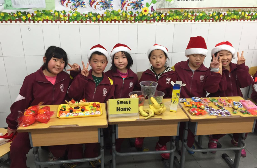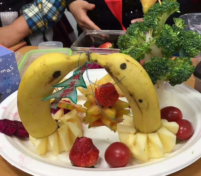 联欢活动在欢快的圣诞歌曲“Jingle bells”中拉开序幕。“贴鼻子”、“萝卜蹲”、“一碗胡辣汤”这些为同学们量身定制的游戏,得到了大家的青睐。“猜神秘人”环节最激动人心。在游戏环节获胜的同学会得到猜“神秘人”的机会,根据线索猜中者,将获得“神秘人”手中的大礼。“创意水果拼盘”环节将此次活动推向高潮。同学们以小组为单位,在15分钟之内将手中的水果材料拼出图案。这个环节比速度,比创意,更比团队协作。“击鼓传花——说说心里话”环节感人至深。拿到花的同学或说说自己在这一年的收获,或说说这一年最想感谢的人。孩子们怀揣感恩之心,共同回首这即将过去的2015年,纷纷述说着自己的心里话,或分享,或展望,老师们倍感欣慰。