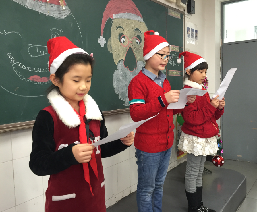 早在一周前,三年级的十位班主任就在家委会的支持下开始着手准备活动了。剪剪贴贴,涂涂画画,教室焕然一新,圣诞节特有的红、白成了主色调。设计活动内容、培训小主持人、与家长沟通细节……老师们每天都忙碌着,只为给同学们过一个愉快的节日。