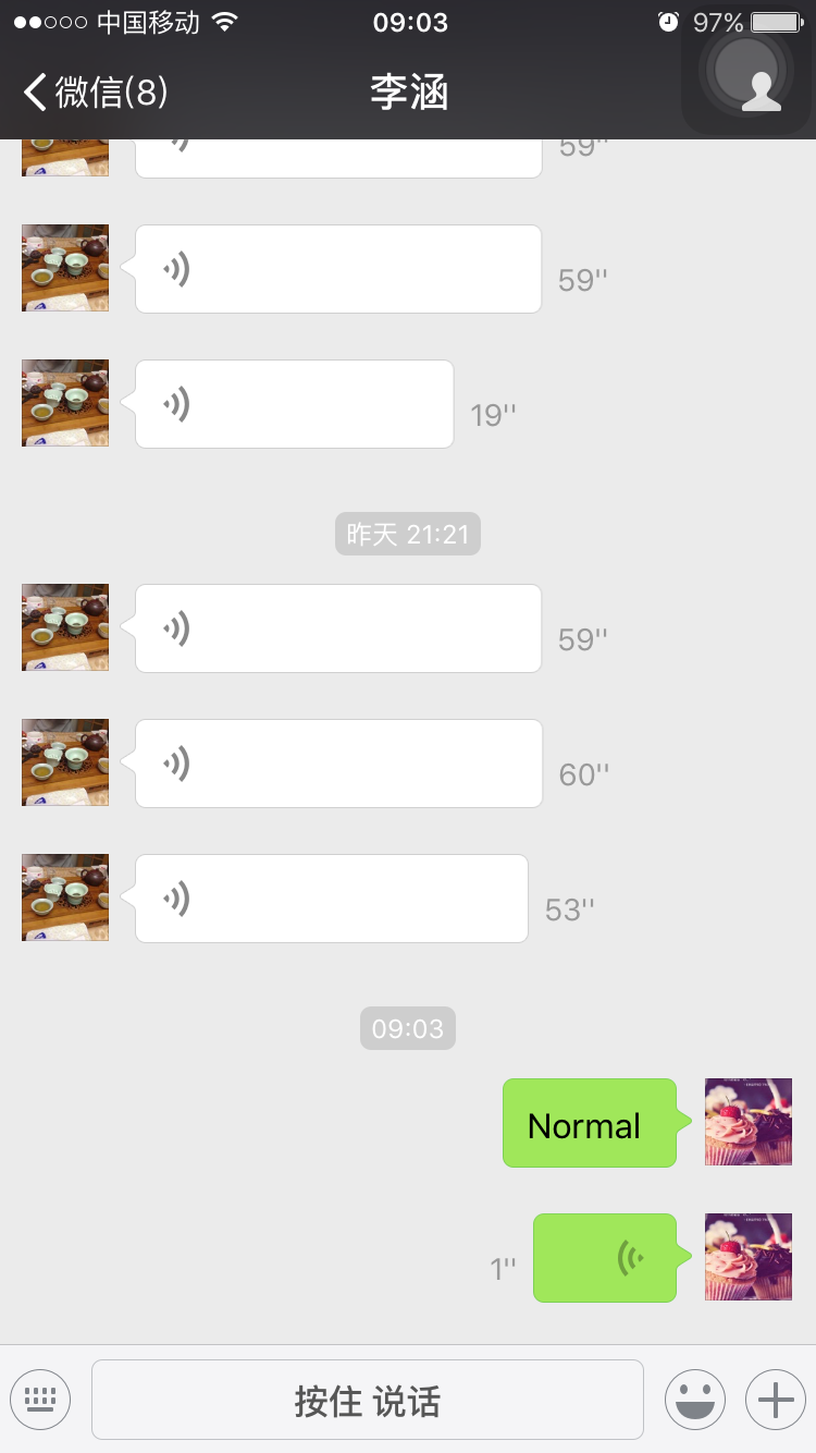 学生通过微信发送口语作业