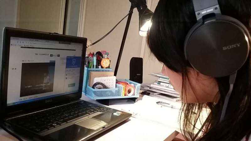 学生观看“快乐学”视频 练习英语听力